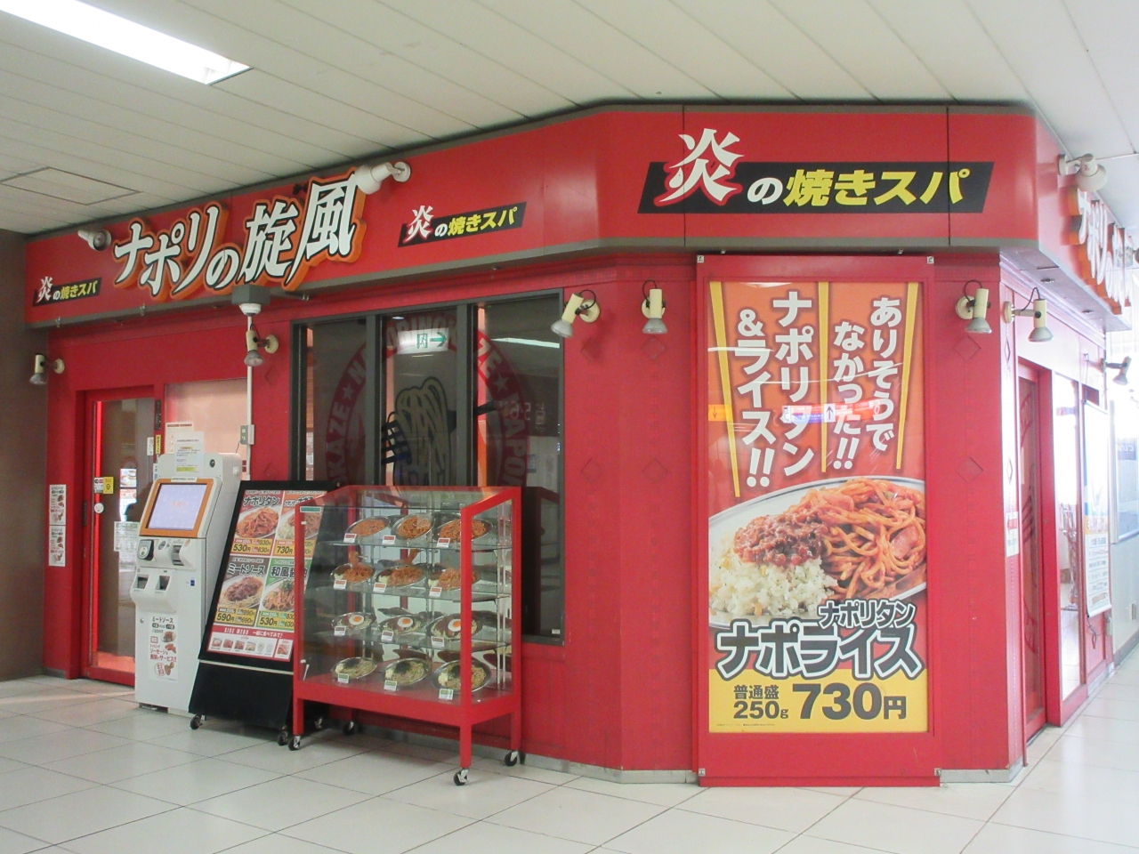 JR赤羽駅南口改札内に出店しているカレー店です。昼食に立ち寄りました。外の券売機で買って店内に入ります。ナポリタン、濃厚ミートソース、和風醤油のスパゲティです。普通盛の他に大盛とメガ盛があります。ナポライスが特徴です。ミートソースをかけたライスとナポリタンの料理です。これも大盛、メガ盛があります。がっつり食べたい人にいいでしょうが、自分は普通のナポリタンにしました。