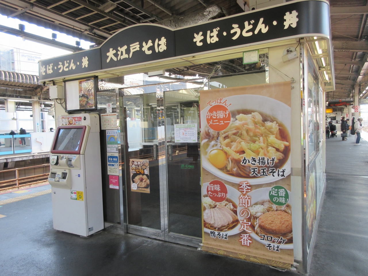 JR赤羽駅3,4番線ホームに造られている蕎麦とうどんの店です。外にある券売機でチケットを購入し店内で食べます。店内は数人入ると一杯になってしまう広さですが、かき揚げや鴨が入ったそばやうどん、かけそば、ざるうどん、カレーライスなどが味わえます。寒い日に身体を温めたい時や小腹が空いた時など、時間をかけずに食べられるので便利です。朝7時からオープンしているのも嬉しいです。