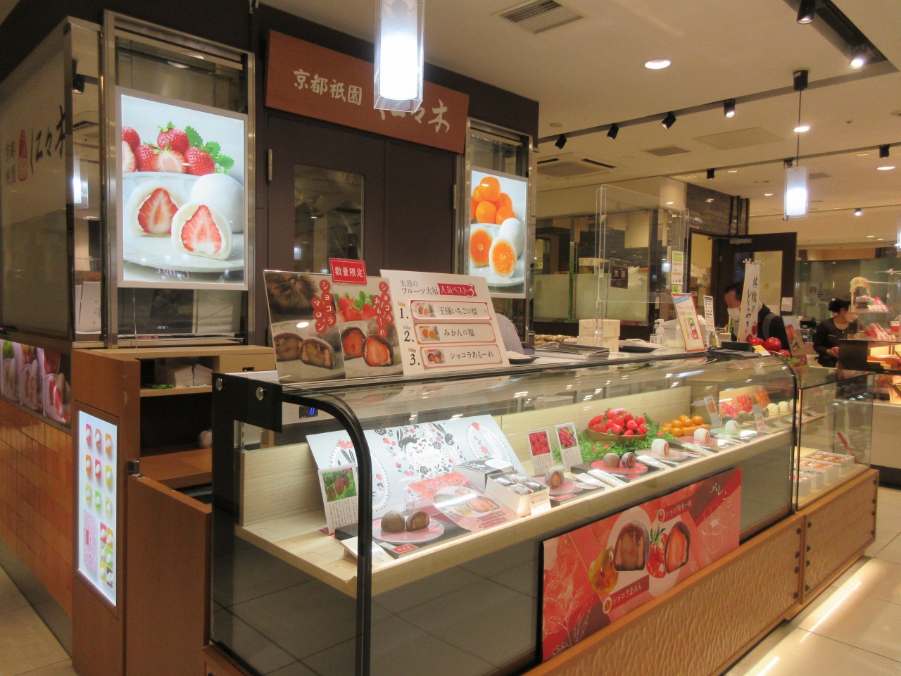 JR赤羽駅構内にあるエキュート赤羽にあります。バレンタインデー間近の休日午前に駅を降り、スイーツを探しに寄りました。壁に色とりどりのフルーツ大福の断面の画像が並んでいて、美味しそうでした。旬の果物を扱い、あまおう苺、みかん、栗などの大福がありました。最中やどら焼きなどもあります。りんごのどら焼きやレモンとリンゴのパイなど和菓子に合う果物を積極的に取り入れている店です。バレンタインデー前ということでチョコレートとあまおうを使った大福ショコラあもーれが珍しかったです。