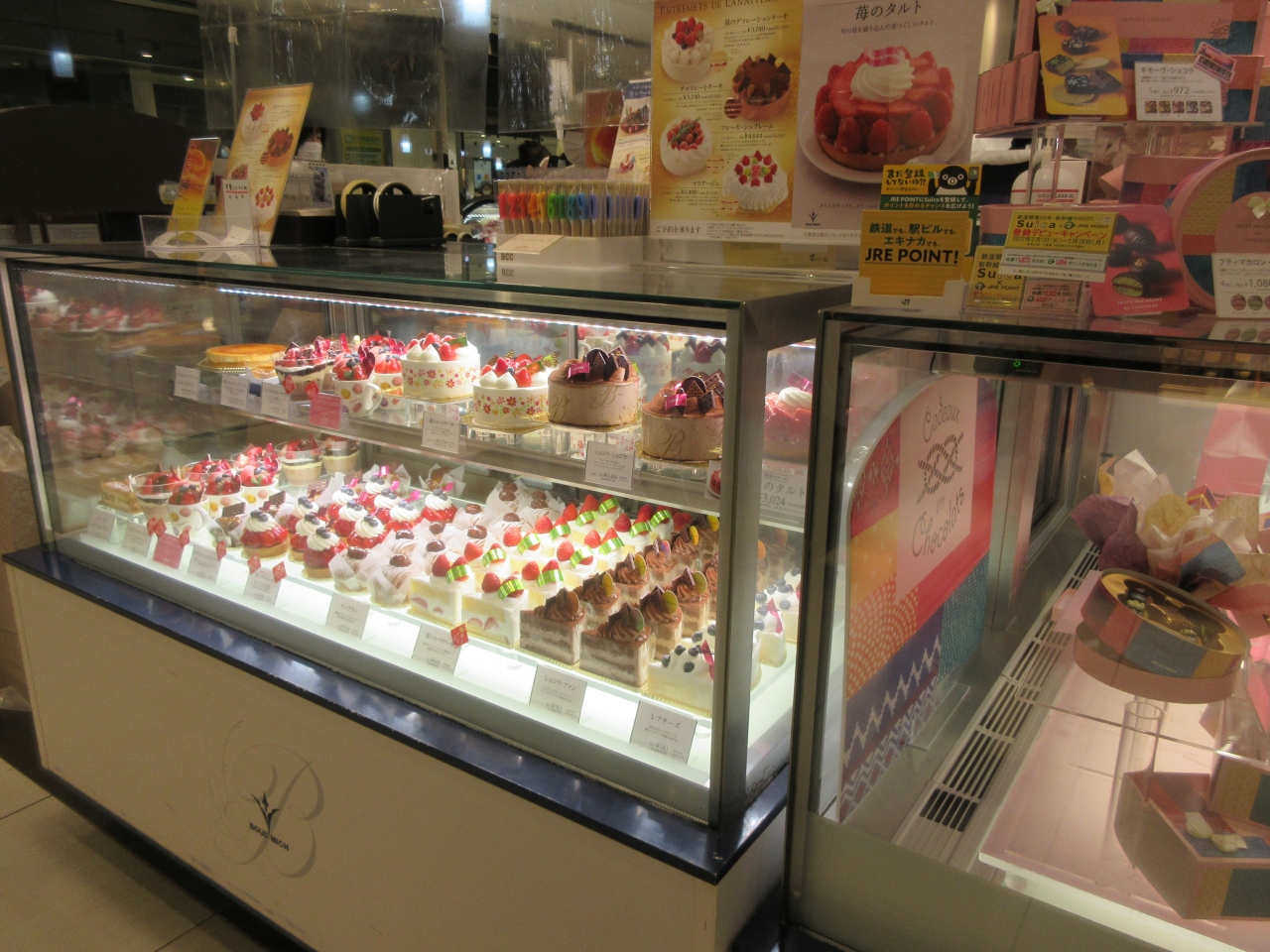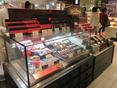 JR赤羽駅構内にあるエキュート赤羽にあります。バレンタインデー間近の休日午前に駅を降り、スイーツを探しに寄りました。チョコレートを扱う洋菓子店が並んでいてどこも女性客でにぎわっていました。定番のチョコレートの詰め合わせはサイズが色々ありました。先日貰った箱詰めもありました。香りや濃さが異なるチョコレートはつまむ楽しさがありました。ホールケーキやチーズケーキやゼリーなどもあり、チョコレートだけではないことを知りました。