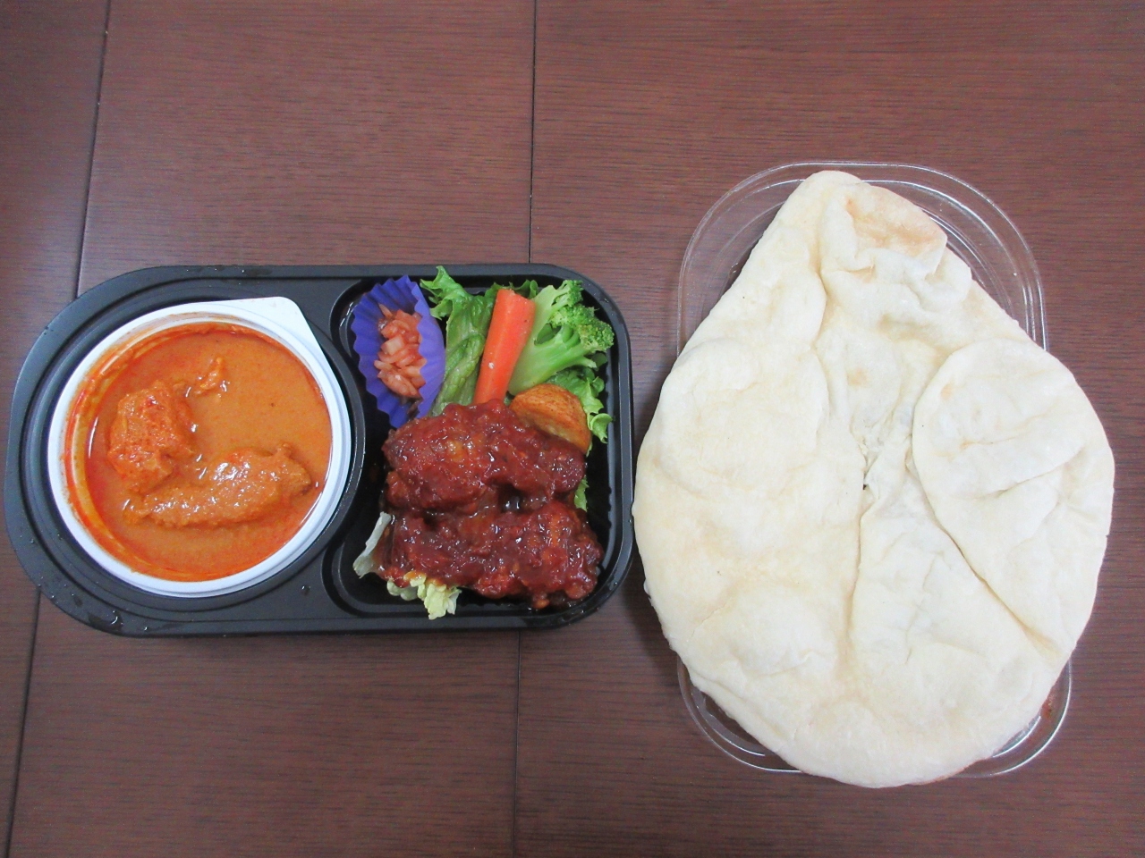 JR赤羽駅構内の商業施設・エキュート赤羽内に出店している店です。昼前に駅を降り、昼食を探していた際に立ち寄りました。エキュート赤羽のイートインできる店の一つです。持ち帰りしやすいプレートパック詰めのセット、各種カレー、ナンドッグ、タンドリーチキン、ミニカバブなどがあります。甘口チキン弁当を購入しました。バターチキンカレーは甘口で、大きなナンと一緒に食べました。手羽元のフライドチキンは甘酢で、弁当全体が甘口でした。付け合わせの玉ねぎの酢漬けが一番ピリ辛でした。次回はキーマカレーを食べてみたいです。