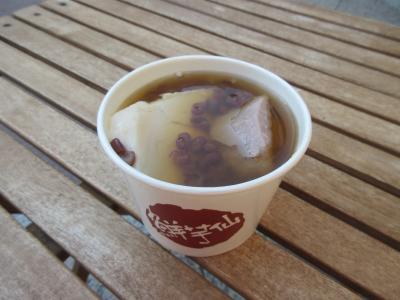 赤羽駅前のビビオ1階、イトーヨーカドー向かいにあります。台湾スイーツ専門店です。かき氷、芋園、仙草、豆花などのスイーツやタピオカドリンクなどがあります。店内に6テーブルと店頭の広場にテーブルがあります。豆花好きの妻は豆花4号(タロイモと小豆)をホットでテイクアウト注文しました。柔らかく煮た小豆とタロイモと豆花が入っていました。さっぱりした甘さのスープと一緒に食べます。Mサイズでも豆花の量が多くて小腹が満たされました。暑くなったらかき氷を食べたいです。