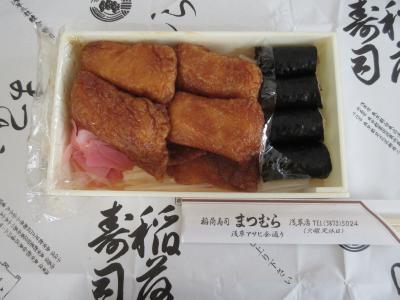 東浅草から吉原大門まで散策した際に寄りました。アサヒ会通りの東浅草2丁目交差点近くにあります。赤い鳥居が描かれている看板が目印です。訪れた休日午前、店から数個の折詰を持って車に乗り込んだ人を見て、美味しいに違いないと寄りました。店内は客が一人立っていられるだけのスペース以外はコロナ対策がされている厨房になっています。前の客が出てくるまで外で待っていると、男性がやってきて外で待ちました。注文をすると折箱にかんぴょう巻き、稲荷寿司を入れて、包み紙で封をして手渡されました。一人の客に時間がかかるはずです。家で昼食に食べました。かんぴょう巻きは思った通りの味ですが、稲荷寿司に驚きました。厚めの揚げを黒糖で甘く煮て、米が立っているすし飯を包んでいます。物によっては揚げの量が十分すぎるくらい大きくて、揚げを味わう稲荷寿司でした。黒糖好きの妻は美味しいと喜んで食べていました。午前から客が並ぶ訳がわかりました。多数折詰を注文する場合、あらかじめ電話予約をおすすめします。