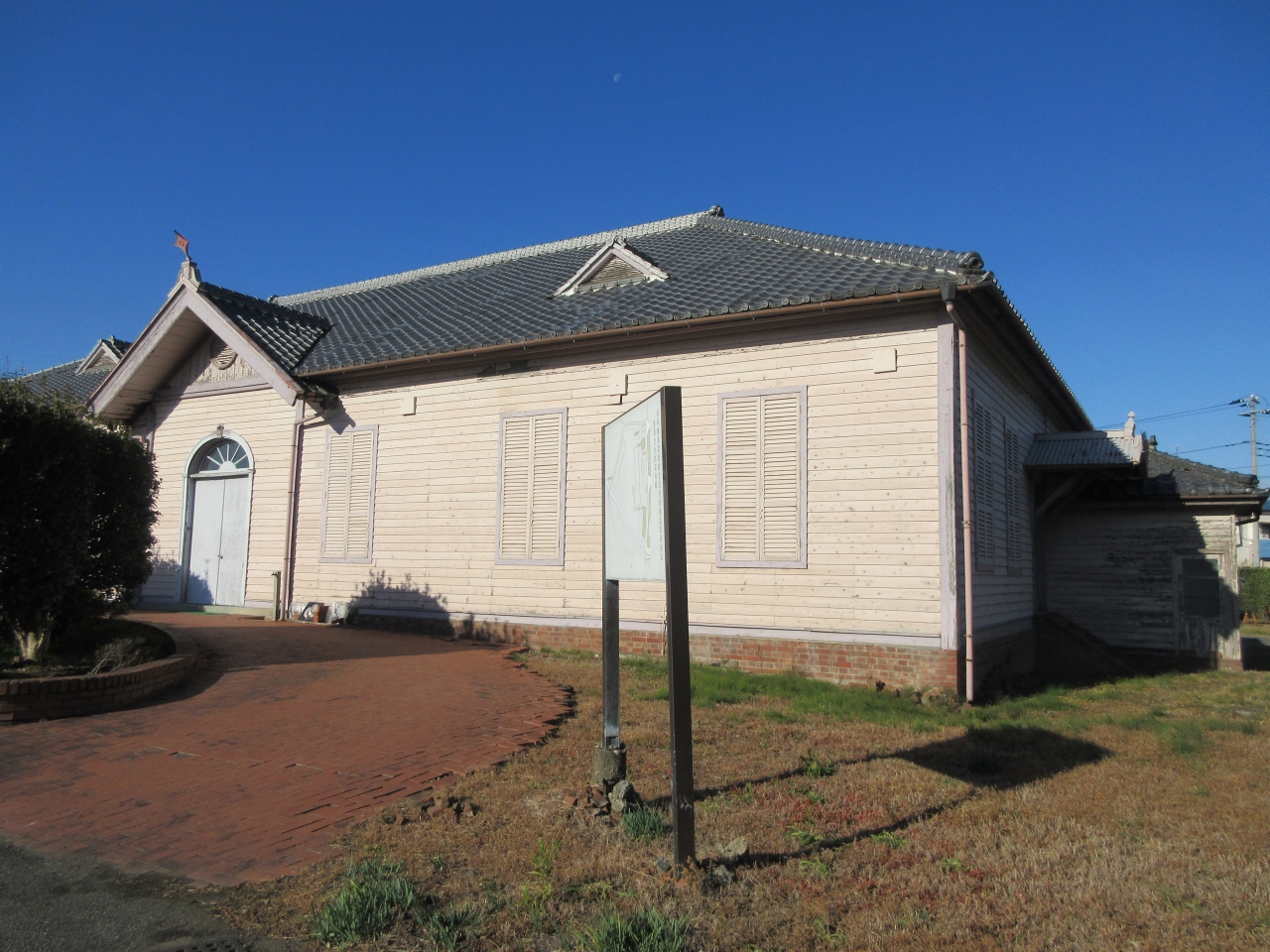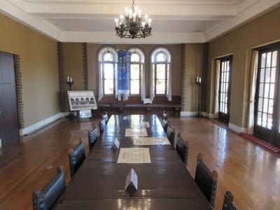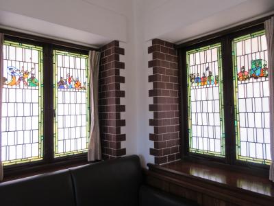 深谷市大寄公民館の敷地内にある渋沢栄一の喜寿を祝うために建てられた国指定重要文化財の誠之堂と土井一銀行頭取佐々木勇之助の古希を記念して建てられた清風亭です。東京世田谷の第一銀行のスポーツ施設内に建てられたものを、深谷市が譲り受け移築しました。共に見どころが多い建物です。煉瓦積みの外観、暖炉の外側にある喜寿の文字、鮮やかな色のステンドグラス、ベランダの椅子などが特徴の誠之堂です。出窓を飾る煉瓦と控えめな色のステンドグラス、長いベランダ、美しい色のスパニッシュ瓦などが特徴の清風亭です。以前世田谷区瀬田を散策した時に、道路の上に渡り廊下のあるインターナショナルスクールがあったことを思い出しました。両建物があった場所だったことを後で調べて知りました。これも散策の楽しみです。