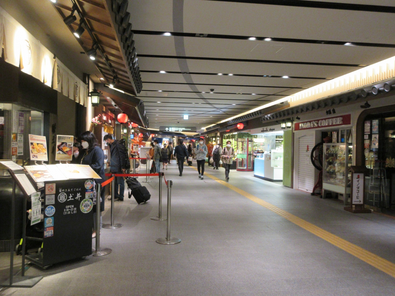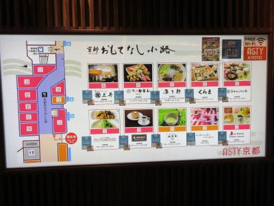 京都駅新幹線八条東口改札を出て、右に歩くとあります。有名なコーヒー店、和食、洋食、抹茶ドリンクが飲める茶店などの10軒の飲食店が並んでいます。京都滞在初日に、おばんざいの店を利用しました。週末の夕食時、その店に行列ができていました。駅直結の店で、漬物とおばんざいのバイキングを注文し、腹一杯食べました。コーヒー店の有名なモーニングを後日食べようと思いましたが、開店時間が自分たちの予定に合わなかったので利用しませんでした。滞在中何度かコーヒー店の前を通りました。平日昼間、利用客が多かったです。京都駅八条口にある便利な飲食店街です。