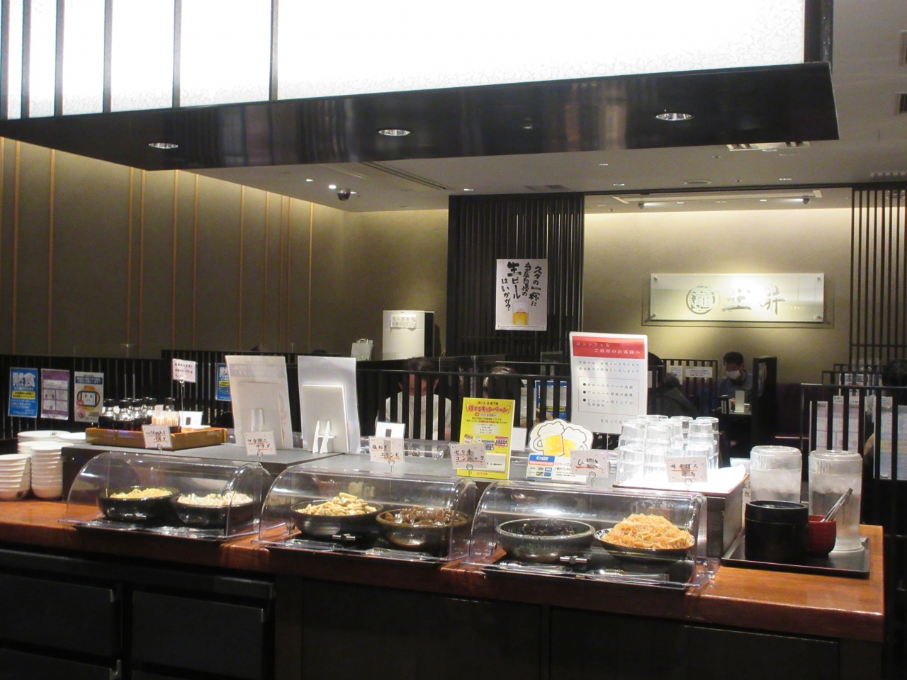京都駅新幹線八条東口そばにあるアスティ京都のおもてなし小路にあります。漬物の土井のおばんざいの店です。京都旅行の初日に漬物とおばんざいを食べたくて夕食に利用しました。週末午後6時過ぎに名前を記入して並びました。数分で席に案内されました。お漬物ビュッフェ、竈ごはん、味噌汁を注文しました。漬物6種類とおばんざい6種類のビュッフェでした。お替りの熱いほうじ茶と水はセルフでした。どの漬物もおばんざいも美味しかったですが、軽い苦みが美味しい日の菜漬物やさっぱりした甘口のひじきが特に気に入りました。竈ごはんは無料でお替りできました。濃い味付けと薄い味付けがあり選べたのがよかったです。〆に竈ごはんにほうじ茶をかけて漬物でお茶漬けにしました。お腹一杯になりました。