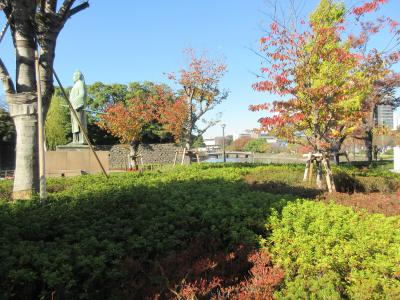東西線・竹橋駅2番出口を出たところに造られている緑地です。3年ほど前に訪れた時は工事中だったため、今回近くを通りかかった際に立ち寄りました。交通量が多い内堀通りに面しているものの、反対側は大手濠に面し、敷地には小石が敷き詰められ、木々は赤や黄色に色づき落ち着いた雰囲気が感じられました。緑地内に建つ和気清麻呂像の写真を撮りに来ている人も見られました。駐輪場ではないにもかかわらず、通勤で竹橋駅を利用する人の自転車が数台駐輪していたのが残念でした。