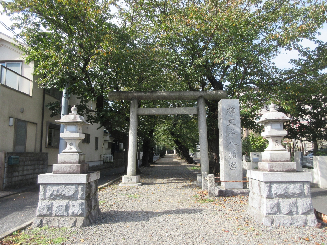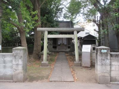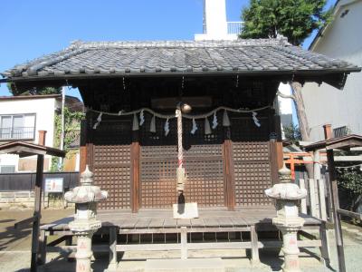 立会川緑道の西端にある交差点に石鳥居が建っていて、桜並木の参道が100mほどあり、その先に石鳥居があります。創建は鎌倉時代とも室町時代ともいわれる碑文谷の鎮守です。境内は広く大木が生えています。神楽殿そばの石段を上がったところに木造社殿があります。正面の彫り物はみごとで、社殿の外側に大きな絵馬が飾られています。社殿の右脇に、地名の由来となった碑文石が祠の中に保存されていました。碑文が彫られている砂岩で、説明板に碑文が書かれていますが、彫られている字が薄くて読めませんでした。社殿の左奥にブランコやシーソーがあり児童遊園になっていました。訪れた平日午前、近くの小学生たちがどんぐりを拾いに来ていました。