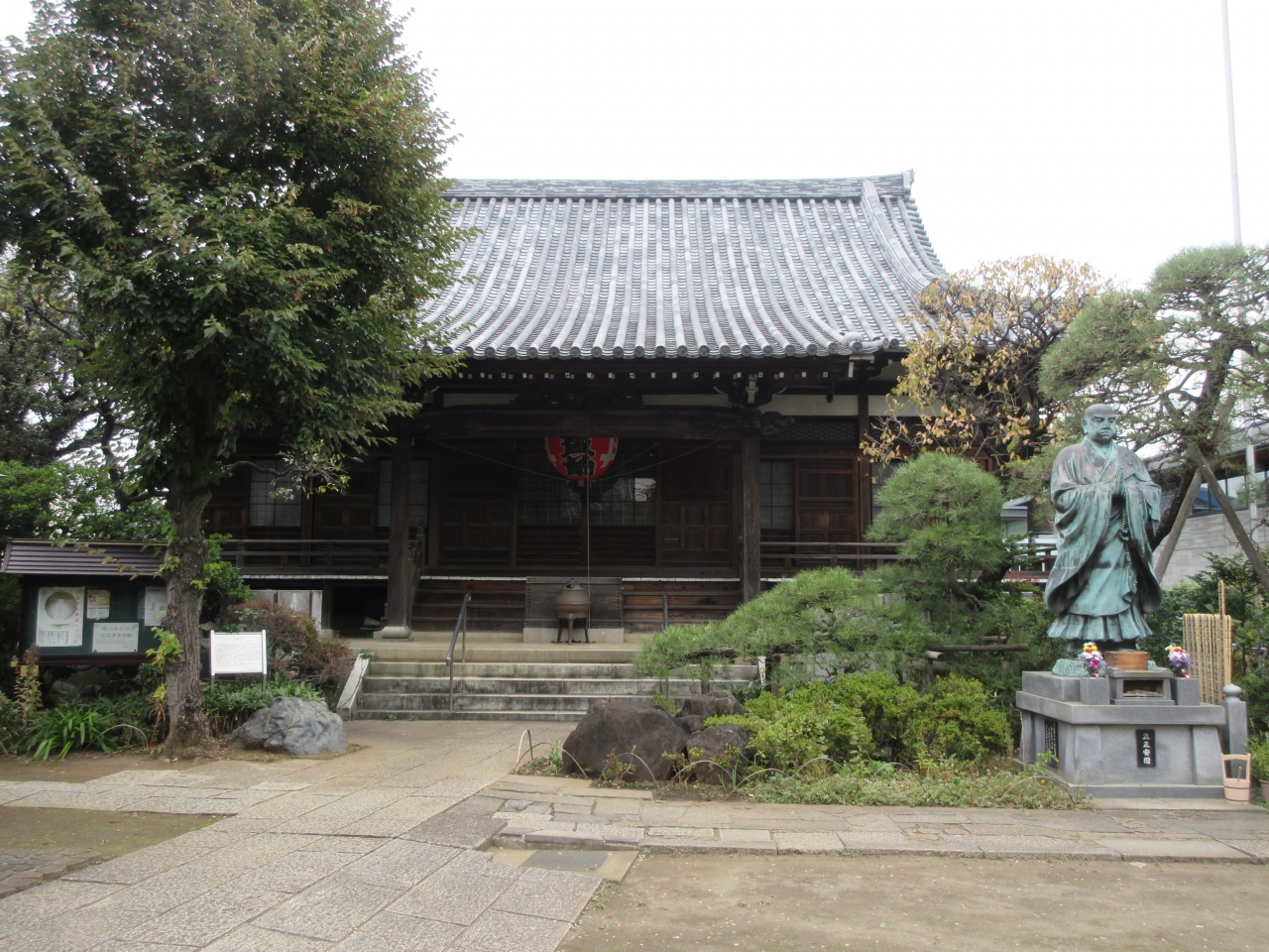 都立大学駅から徒歩8分ほどのところに建つ、1624年創建日蓮宗寺院です。円融寺の末寺でしたが、円融寺が天台宗に改宗してから、身延山久遠寺の末寺になりました。木造山門の奥に木造瓦屋根の本堂が建っています。本堂前に日蓮上人像があります。墓地は広く、墓参する人がいました。樹木葬の区画があるのも特徴です。本堂の右に大きな建物がありました。寺務所のようで墓参の人が声をかけていましたが、近代的な建物の外にはテラス席のようなテーブル席がありました。後で調べると、日本拳法道場のようで、練習が行われる建物のようでした。スポーツの道場を持っている寺院は珍しく印象深かったです。