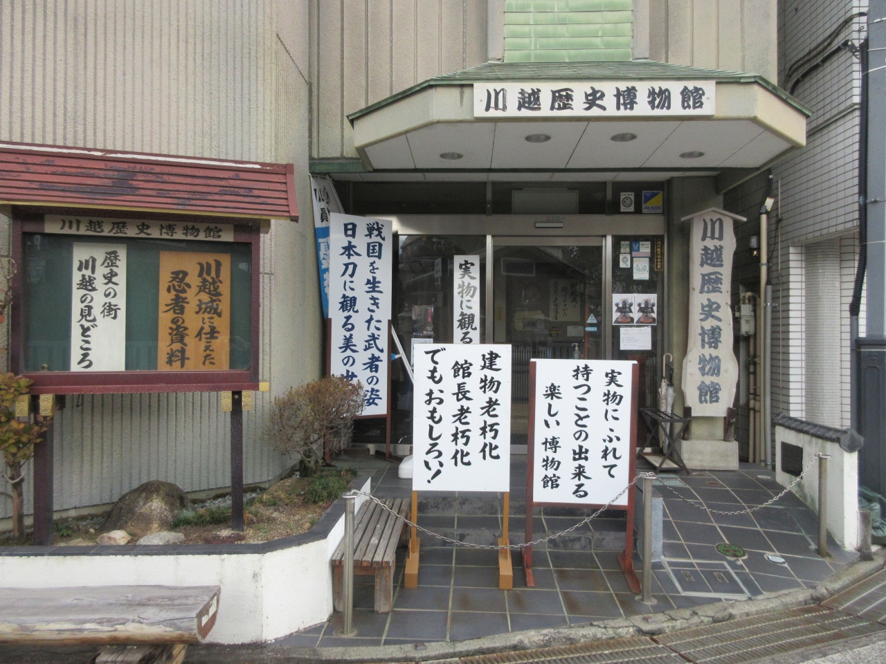 蔵造りの町並み沿い、川越まつり会館から100mほどのところに建つ無料の資料館です。1822年に照降商(照は草履、降は下駄や傘)として創業、明治に入り薬の販売も行っていた家で、館内には薬商の店先を保存し、薬商の看板や明治時代のすごろく、明治26年に起こった大火以前の建物を描いた版画、印伝やろうそく入れ、道計り、印鑑など江戸時代の旅道具が展示されています。服部家の子孫の方が館長をしていて、詳しくいろいろなことを説明してくれたので、川越の歴史を知ることができ楽しい時間が過ごせました。資料館前の町並みは多くの観光客や校外活動をしている中学生で混雑していたにもかかわらず、資料館を訪れる人はほとんどなく、とてももったいない気がしました。