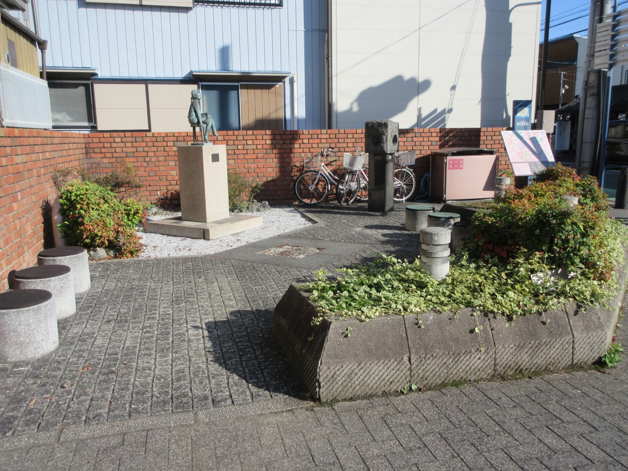 蔵造りの町並みのはずれ、札の辻交差点角に造られた小さな広場です。河越の中央に位置し四方に向かうことができる日本橋のような場所と刻まれた碑が建っています。煉瓦塀と花壇に囲まれ、ベンチも置かれているので散策に疲れた身体を休めることもできますが、交通量が多い道沿いにあるためか、利用している人はいませんでした。