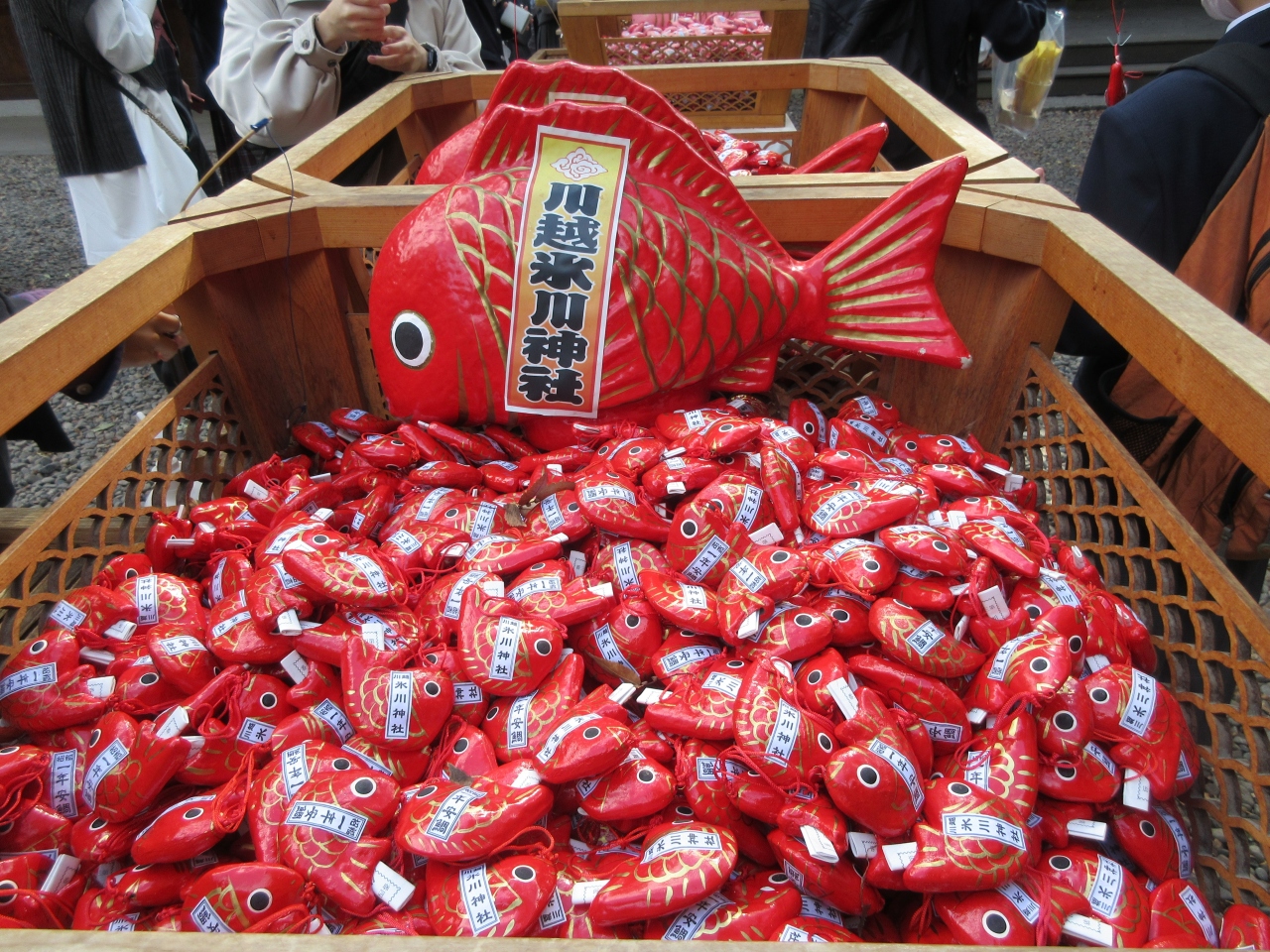 市立博物館から200mほど、川越城本丸御殿の向かいに建つ、童謡・とおりゃんせで知られる神社です。平安時代に創建され、江戸時代に川越城の鎮守として川越藩主によって再建されました。朱色の本殿手前には装飾がない蛭子社と大黒社が向かい合って建っています。長い参道や広い境内があるにもかかわらず、氷川神社や八幡宮と異なり、人の姿が少ない静かな神社でした。