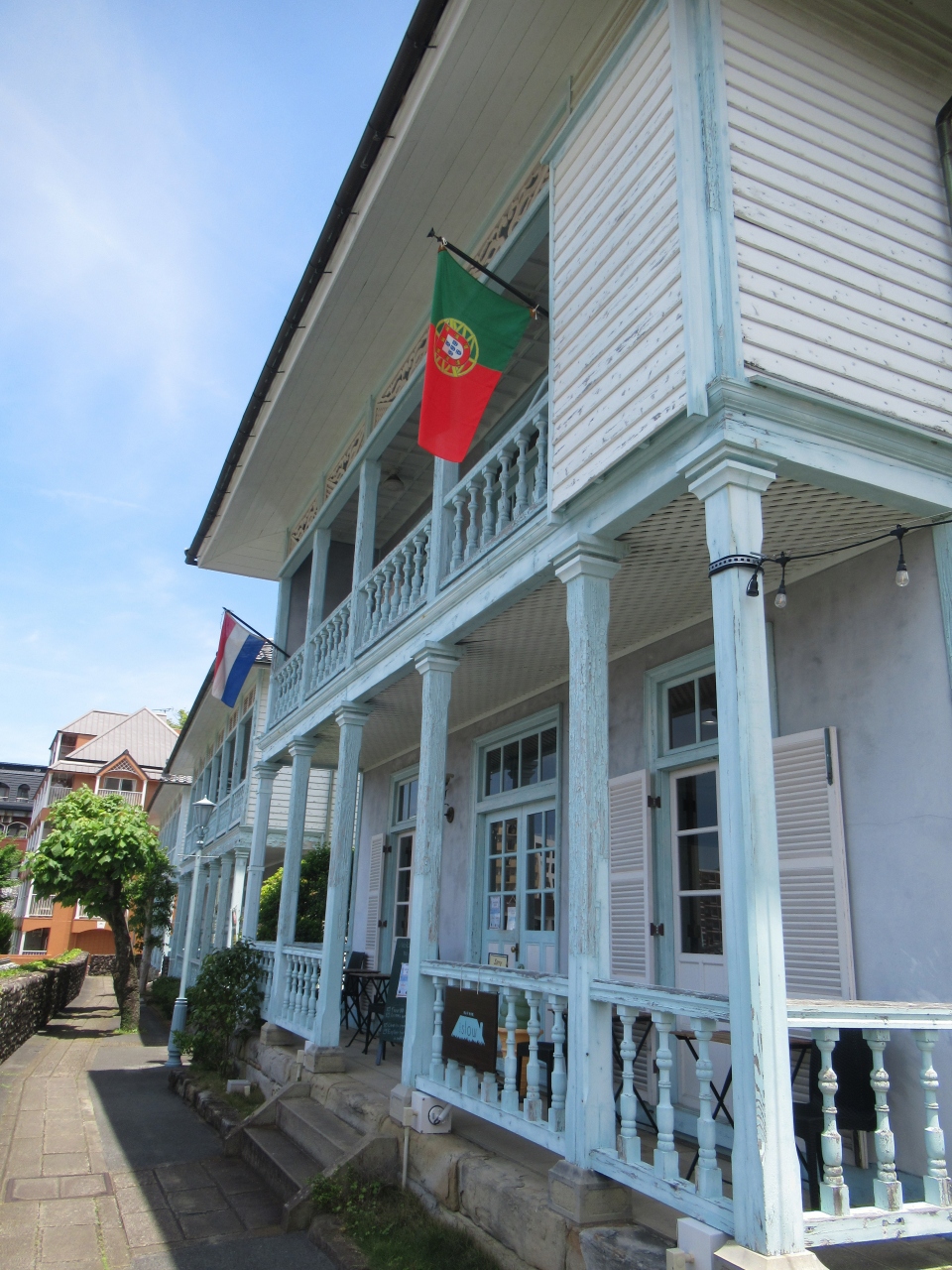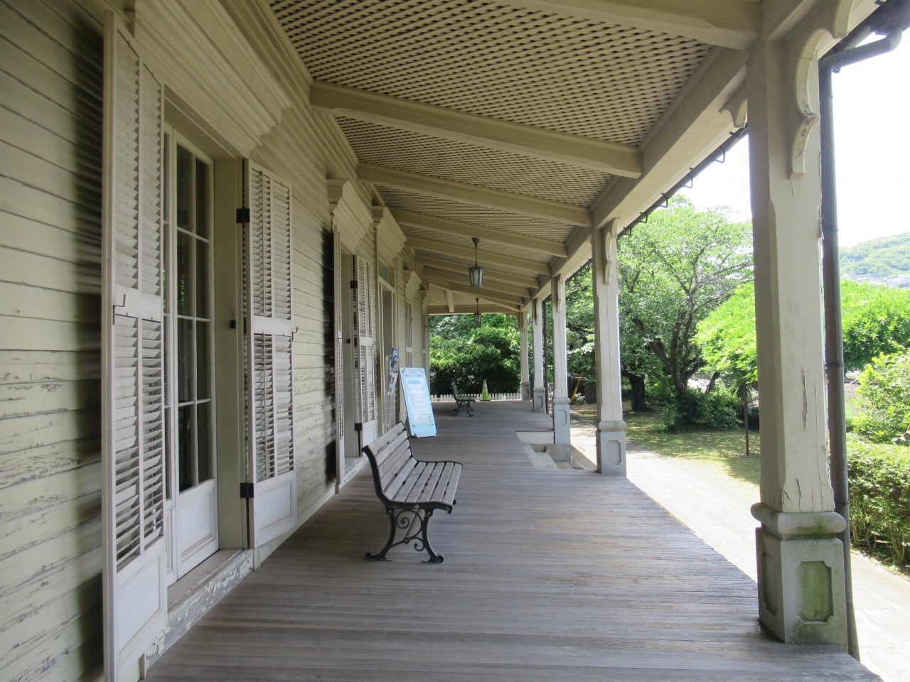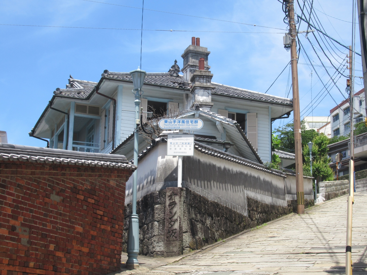 活水女子大学前のオランダ坂を上がった先に、社宅や賃貸住宅として利用されていた、居留地時代の洋風建物が7棟保存され残っています。そのうちの2棟では、居留地だったころの街並みを写真やパネルで紹介しています。7棟を1棟ずつ見学するのも面白いですが、町並み全体を眺めることで異国情緒が感じられ、居留地時代の姿を連想することができました。
