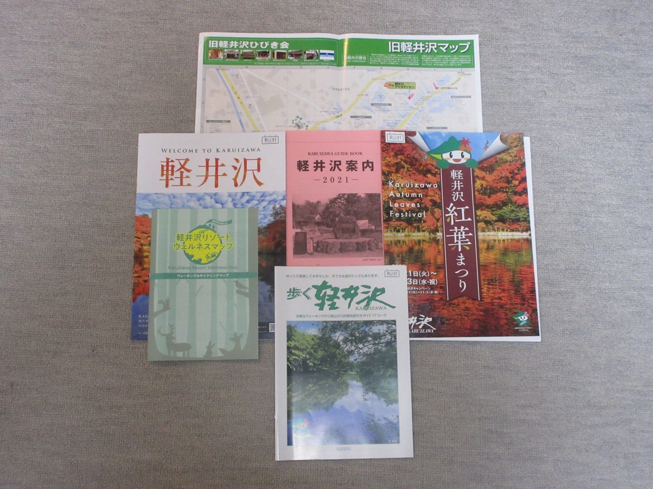軽井沢にはここ中軽井沢駅観光案内所の他、軽井沢駅観光案内所や旧軽井沢銀座沿いにある観光会館、軽井沢本通り沿いに建つ観光振興センターなど、多くの観光案内所があります。どの案内所にも外国語のパンフレットや地図を含め、多くの参考資料が揃っています。中でも軽井沢全体の地図や旧軽井沢銀座の店が載っている地図などは観光に役立ちます。わからないことは担当の方がいるので、詳しく丁寧に説明してくれます。特に自転車で軽井沢を巡る際にもらった地図はとても役に立ちました。希望すれば駅に掲示されている大きなポスターもいただけます。