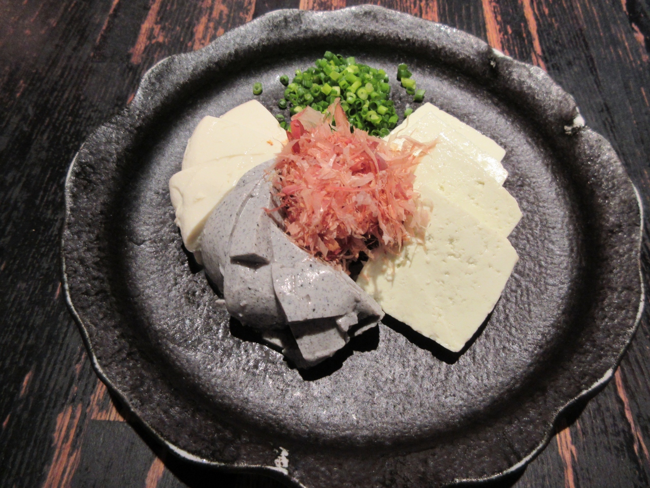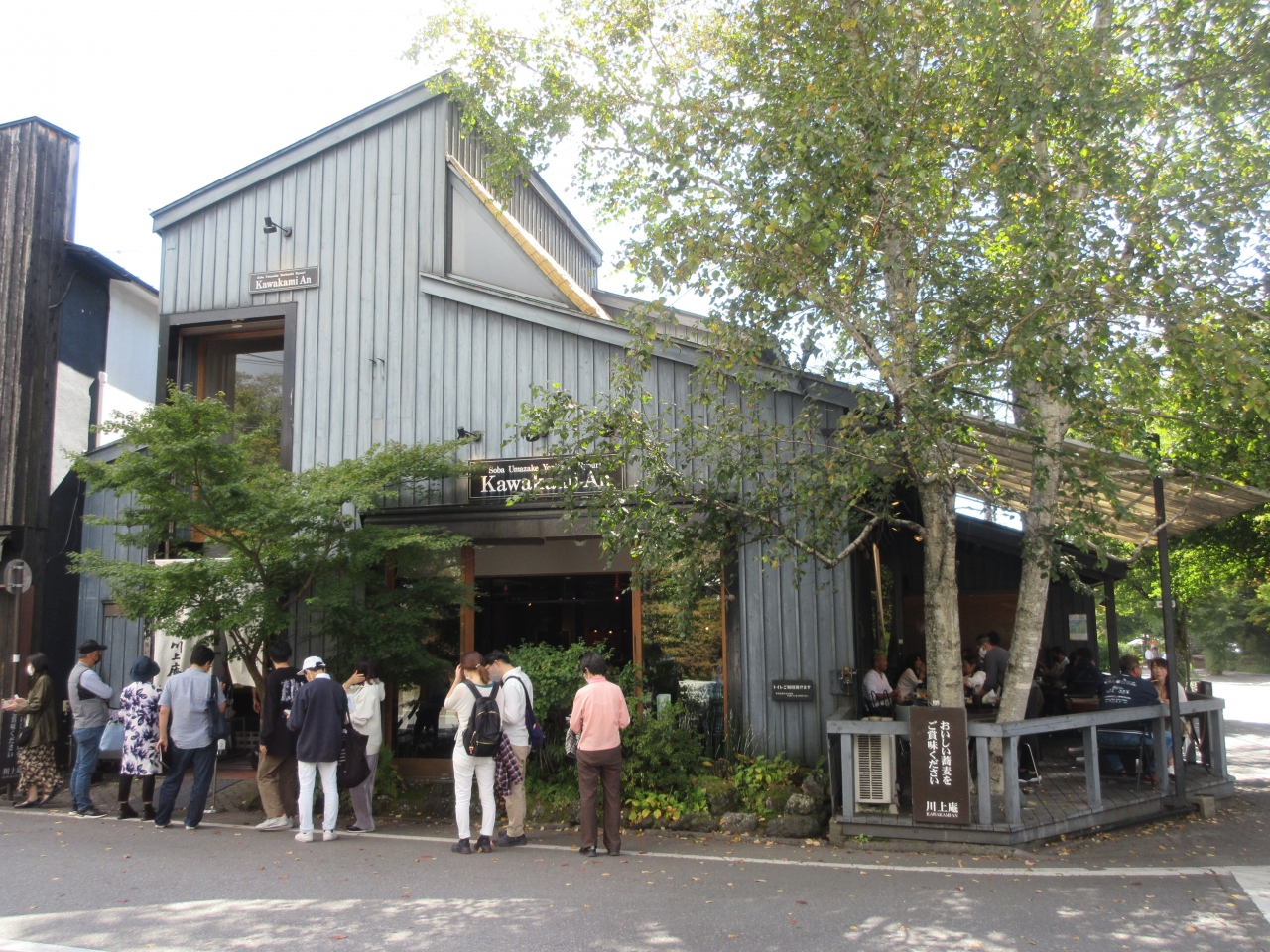 旧軽井沢銀座入口から50mほどのところに建つ人気の蕎麦屋さんです。開店前から列ができるほどの蕎麦屋さんで、訪れた際に係の方から今なら20分も待たずに入れますよと言われ、混んでいる時の待ち時間が長い蕎麦屋さんであることが想像できました。ジャズが流れる店内はとても広く、犬を連れて入ることができるテラス席を含め100席以上あります。蕎麦は腰と香り、甘さがあり、鴨の肉やおろしなど具がたくさん入っていて、列ができる理由がよくわかりました。豆腐の三種盛は、豆腐がのった大皿も小分けする小皿も冷えていて、これまた絶品でした。1時間待ってでも食べたくなる蕎麦屋さんです。