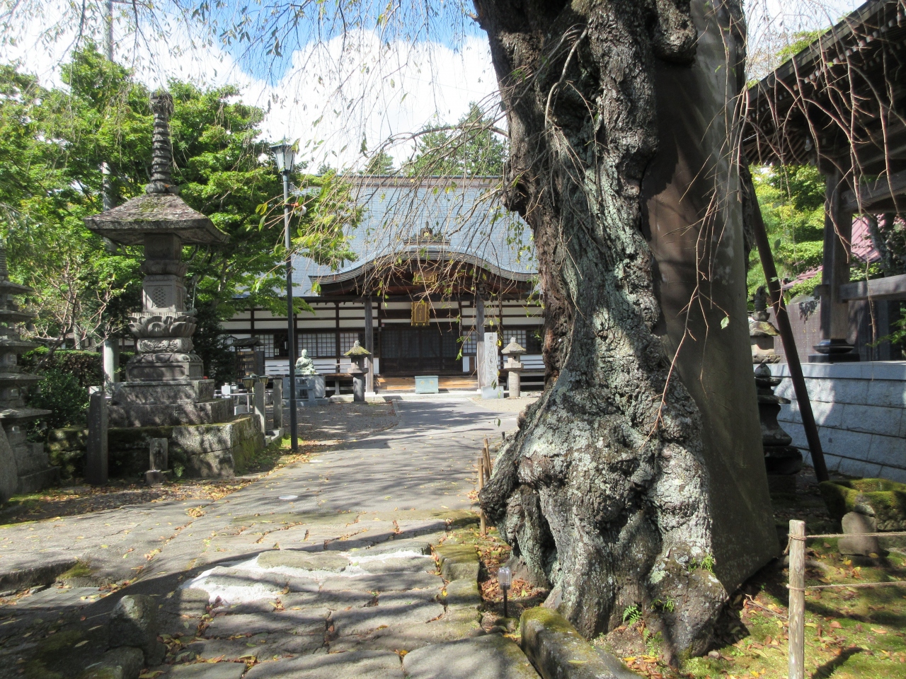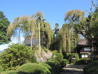 塩山駅から車で10分ほど、南北朝時代に夢窓疎石によって開かれた臨済宗の寺です。山梨県の天然記念物に指定されているイトザクラで知られています。初秋に訪れたため桜はもちろん咲いていませんでしたが、枝垂れ桜のように垂れ下がった、二本に見える一本の木の枝ぶりから、その素晴らしさを十分に連想することができました。山門手前には訪れることができなかった両親の故郷に建つ樋口一葉の胸像や、本堂奥には樋口一葉の文学碑も建っています。イトザクラの時季に再度訪れたいと思いましたが、大変な人混みになるだろうと思います。寺から800mほどのところには、同じくイトザクラで知られる周林寺も建っています。