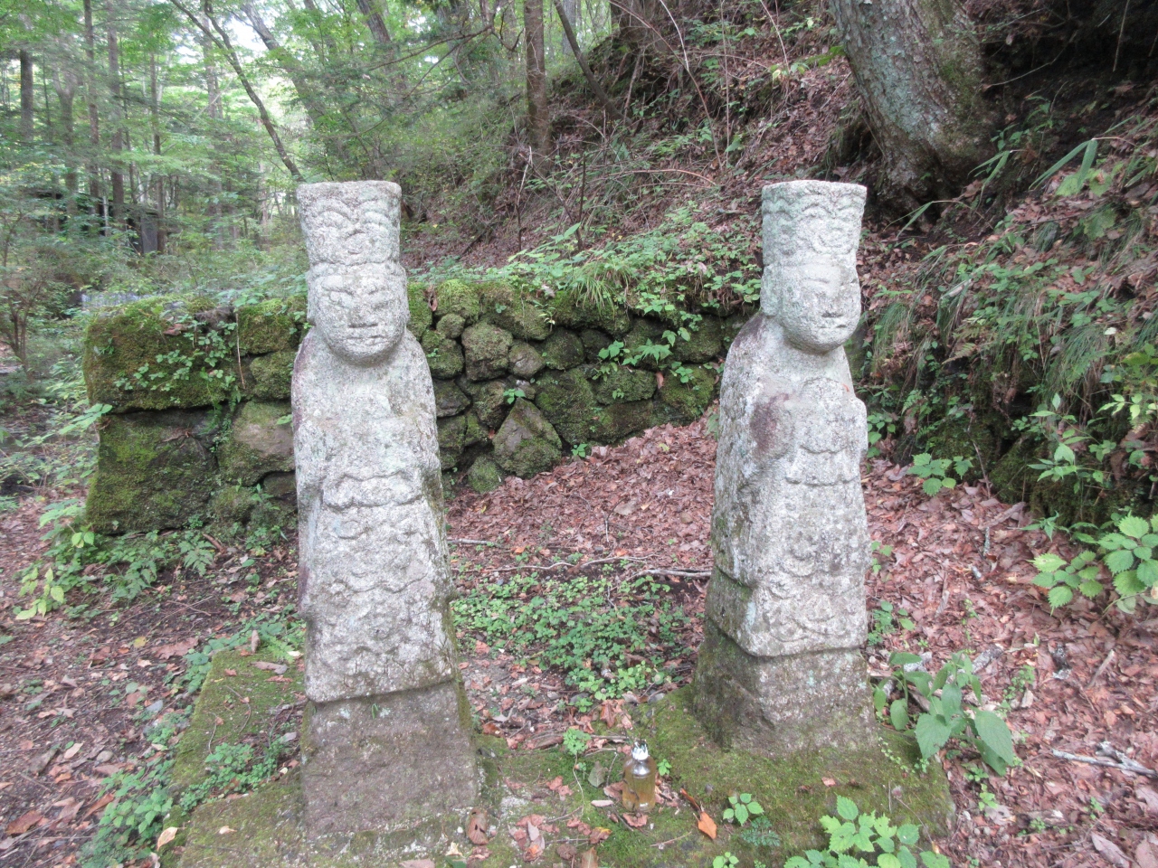この場所がどこにあるのかわからなかったので、訪れる前に観光振興センターの方に伺ったところ、丁寧に行き方と場所を説明してくれました。場所は万平ホテル正面に向かって左側にある別荘地帯の、石垣がある小径です。名称が書かれた案内板もなく、なぜこのような名称がついているのかわかりませんでした。小径の両側に別荘が点在する、軽井沢ではよく見かける風景のエリアです。