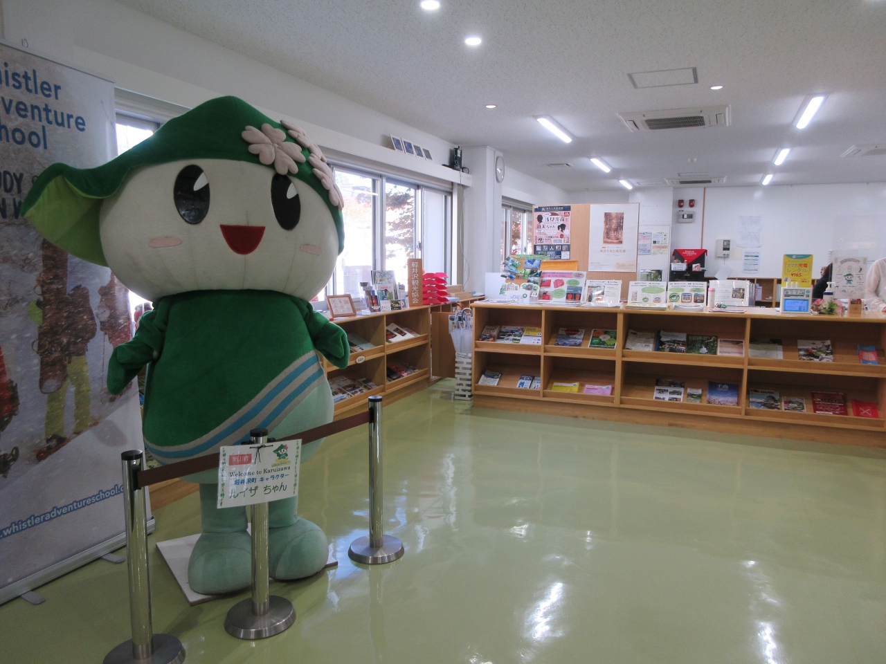 軽井沢本通り沿い、旧軽井沢銀座入口から500mほどのところに建つ観光案内所です。軽井沢町にある観光案内所の事務局になっていて、センター内には長野県や群馬県、軽井沢のパンフレットや地図が数多く置かれています。係の方も常駐していて快く対応してくれました。軽井沢のキャラクター・ルイザちゃんも、コロナでイベントが減り出番が少なくなり、センター内に飾られていました。軽井沢の中心から離れているので訪れる人も少なく、丁寧に対応してくれたのが印象的でした。