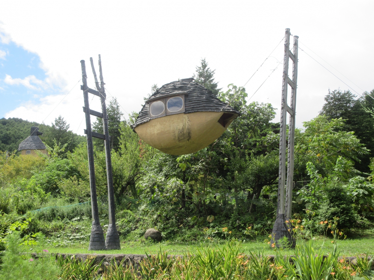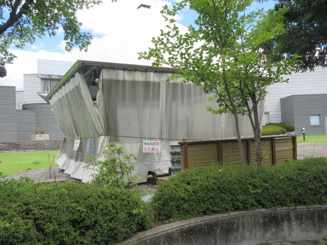 諏訪大社上社本宮から100mほどのところに建つ、上社の神事に関する史料を展示している史料館です。古代から明治初めまで神官の一つである神長官を務めてきたが守矢家が所蔵していた古文書や古図、武田信玄の書状、神事に使用した鹿の頭部などを展示しています。展示されている建物は、大学教授で建築家の藤森氏が設計したもので、御柱をイメージした大きな木が屋根から突き出した形をしています。史料館の奥には、木の上に乗った茶室・高過庵やワイヤーで吊り上げられた空飛ぶ泥舟、土壁と燃やした木で作られた建物など、藤森氏のユニークな作品も展示されています。10年程前に訪れた時はほとんど訪れる人は見られませんでしたが、テレビで放映されたこともあり、観光客の姿が以前に比べ多く見られました。史料館の内容は専門的でも、建造物は不思議な姿をしていて面白いと思います。
