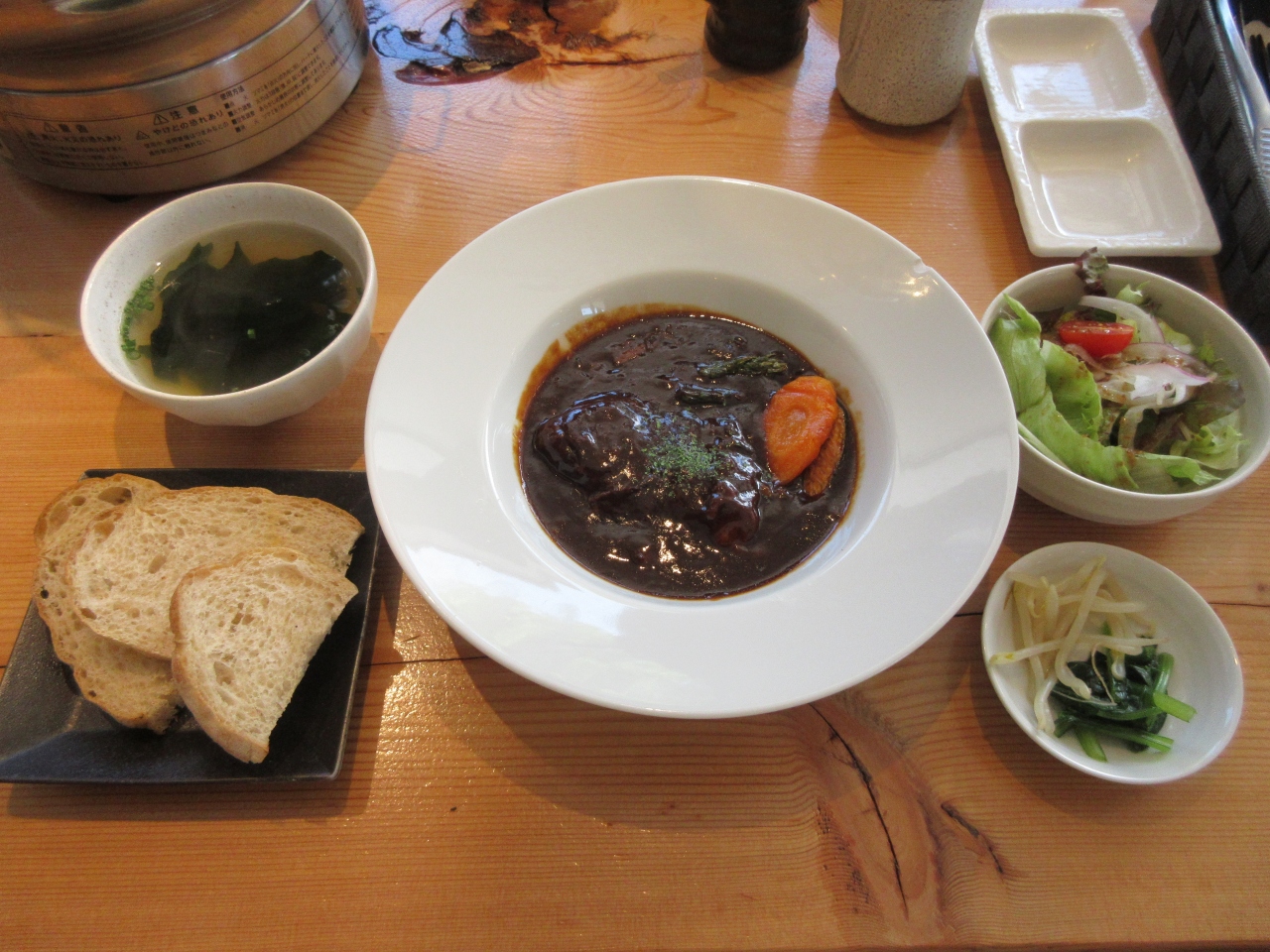 昼食に蓼科湖畔にあるIttouを利用しました。今年から新しいメニューが増えたのでその中からビーフシチューランチと日替わり特選焼肉ランチを注文しました。この日の特選焼肉はイチボで、柔らかく脂が細かく入っていて美味しかったです。ビーフシチューの煮込んである肉はほろほろと柔らかくしっかりした味付けでした。パンを選びましたが、ご飯にシチューをかけても美味しいと思います。持ち帰り弁当の種類も増えました。基本前日までの注文ですが、当日対応できる弁当もあるそうです。