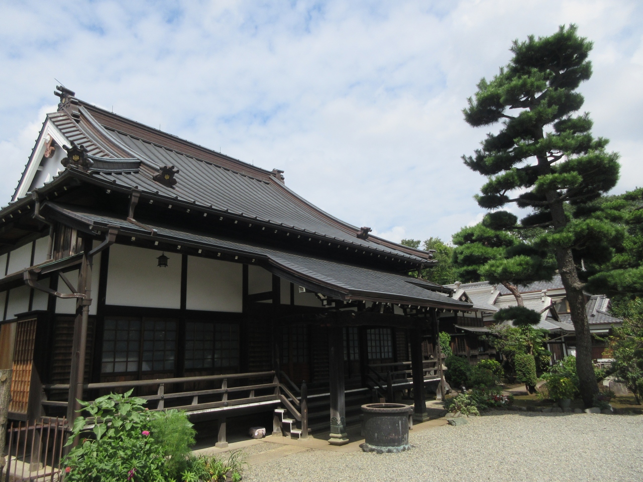 京王線・千歳烏山駅から15分ほどのところに形成されている寺町の一画に建つ浄土真宗の寺院です。関東大震災により、大正時代の終わりに浅草から移ってきました。中央自動車道をくぐった先に建つ寺で、広々とした境内と木造の本堂、境内に植えられた松とイチョウの木が、寺に落ち着きを与えていました。静かな境内からは寺らしさも感じられました。