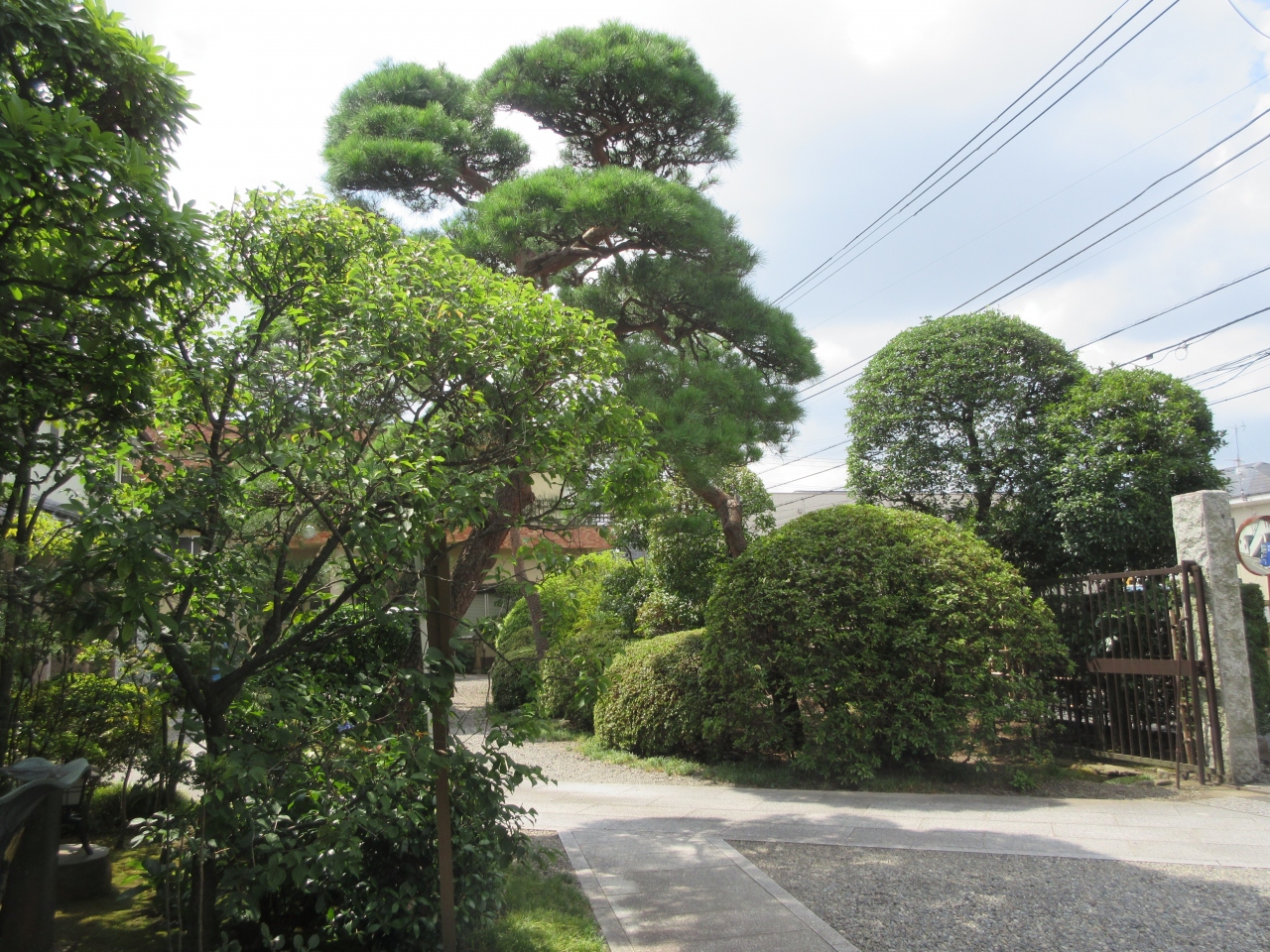千歳烏山駅から15分ほどのところに形成されている寺町を散策した際に訪れた浄土真宗の寺院です。寺が点在する寺町通りの1本北側の通りに建っています。山門と落ち着きある本堂の周辺に手入れされた松が6本ほど植えられているのが特徴です。寺町に建つ寺の多くは広々としているので、この寺はこじんまりしているように感じられましたが、松以外の植木もきれいに手入れされ、静かで落ち着きを感じる寺です。