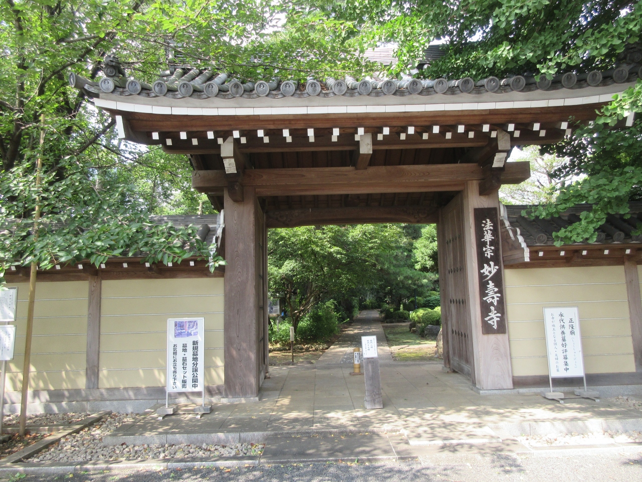 北烏山に形成されている寺町を散策した際に訪れた、京王線・千歳烏山駅から15分ほどのところに建つ日蓮宗の寺院です。江戸時代には歴代の徳川将軍から土地を寄進され、日蓮門下江戸五山に数えられるほど隆盛したそうです。関東大震災で浅草から移転してきた歴史があり、広々とした境内には国家発祥の地と言われる岐阜県揖斐郡から産出されたさざれ石や鐘楼が残っています。瓦屋根の木造山門と山門手前の空間、境内に植えられた松や枝垂れ桜など、開放感ある広々とした寺です。