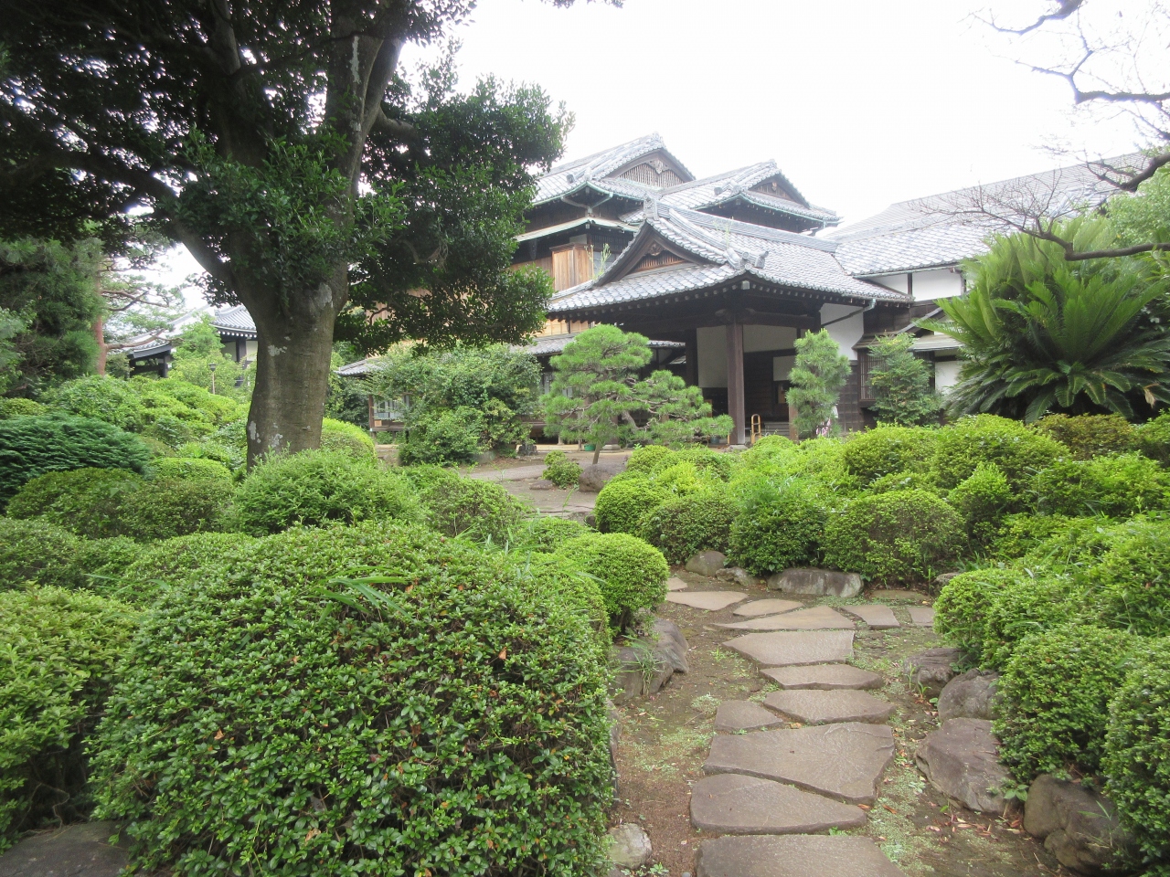 千歳烏山駅から15分ほどのところに形成されている寺町を散策した際に訪れた浄土真宗の寺院です。寺が点在する寺町通りの1本北側の通りに建っています。静かで広々とした境内の中央には、枝ぶりが素晴らしい松とツツジが植えられ、趣ある小庭を作っていました。どっしり構えた本堂と平屋の庫裡が寺らしさを醸し出していました。隣には同じ浄土真宗の寺・万福寺が建っています。