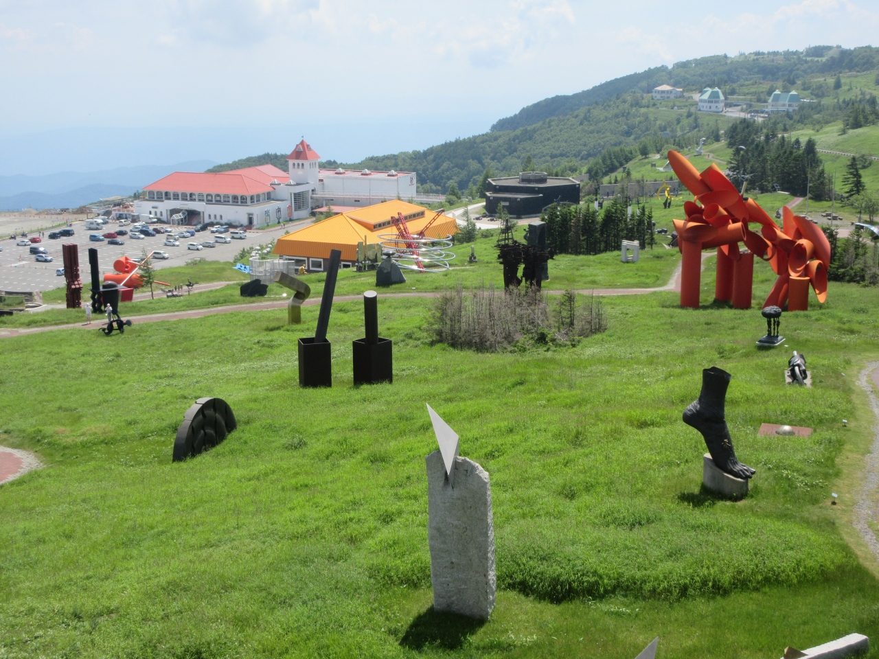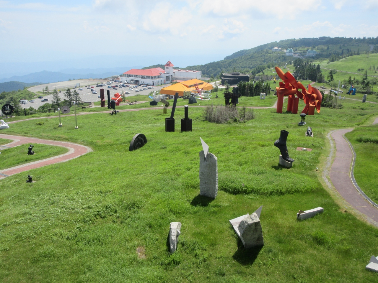 ビーナスラインの終点近くに建つ、世界各国から集められた350点ほどの彫刻が展示された、広大な野外美術館です。30分コースと40分コースがある緑豊かな散策路に沿って展示された彫刻を鑑賞することができますが、作品をじっくり見ていると1日かかってしまうほどの数があります。敷地内には子供が遊べる遊具施設があるこども美術館や、高原に咲く高山植物を映像で紹介するギャラリー、展示会で優秀な賞を取った作品が展示されたギャラリーなどもあります。彫刻にあまり関心がない自分ですが、開放的な広々とした屋外で、ユニークな彫刻や巨大な彫刻に目を奪われ楽しい時間を過ごすことができました。