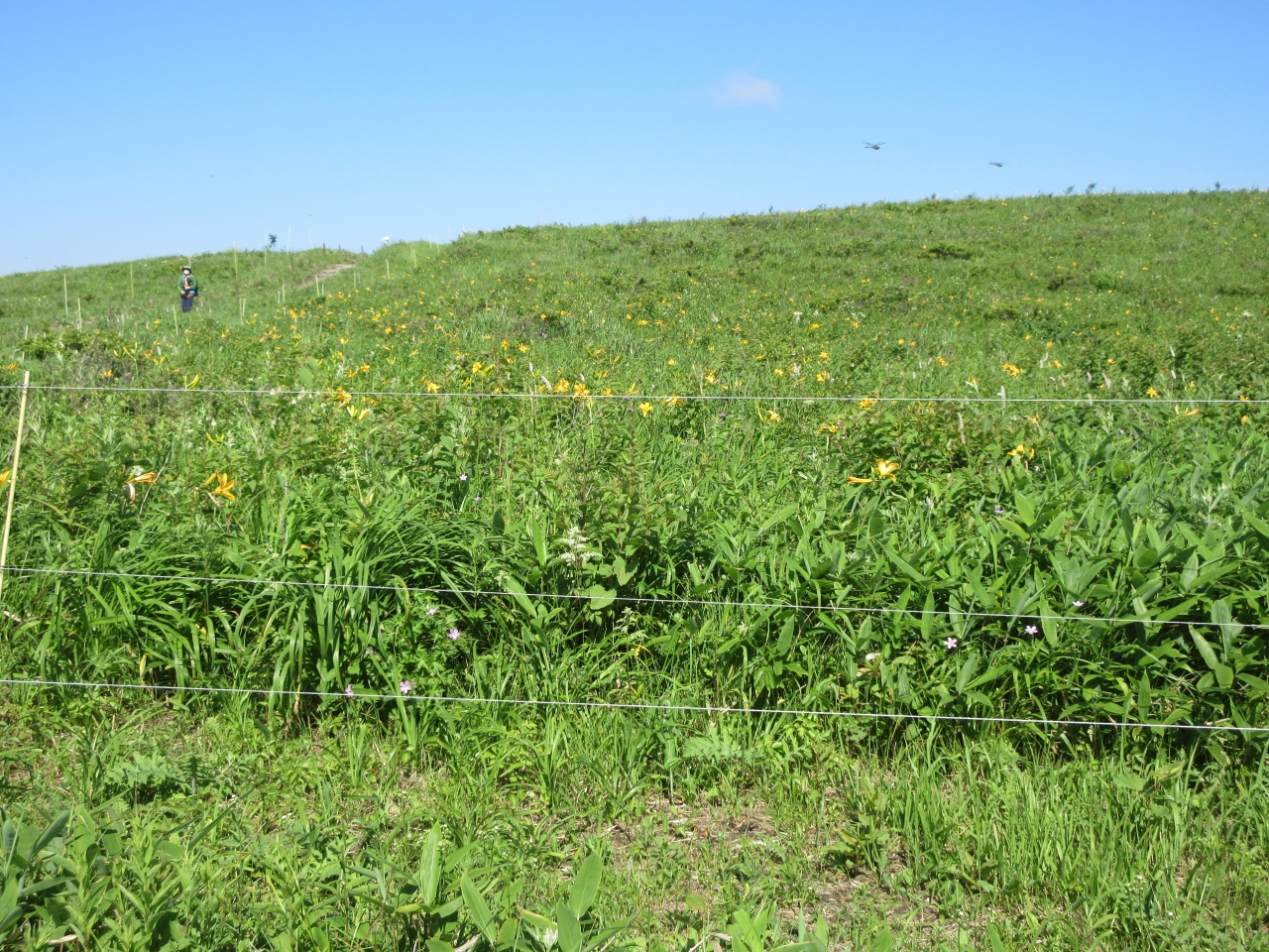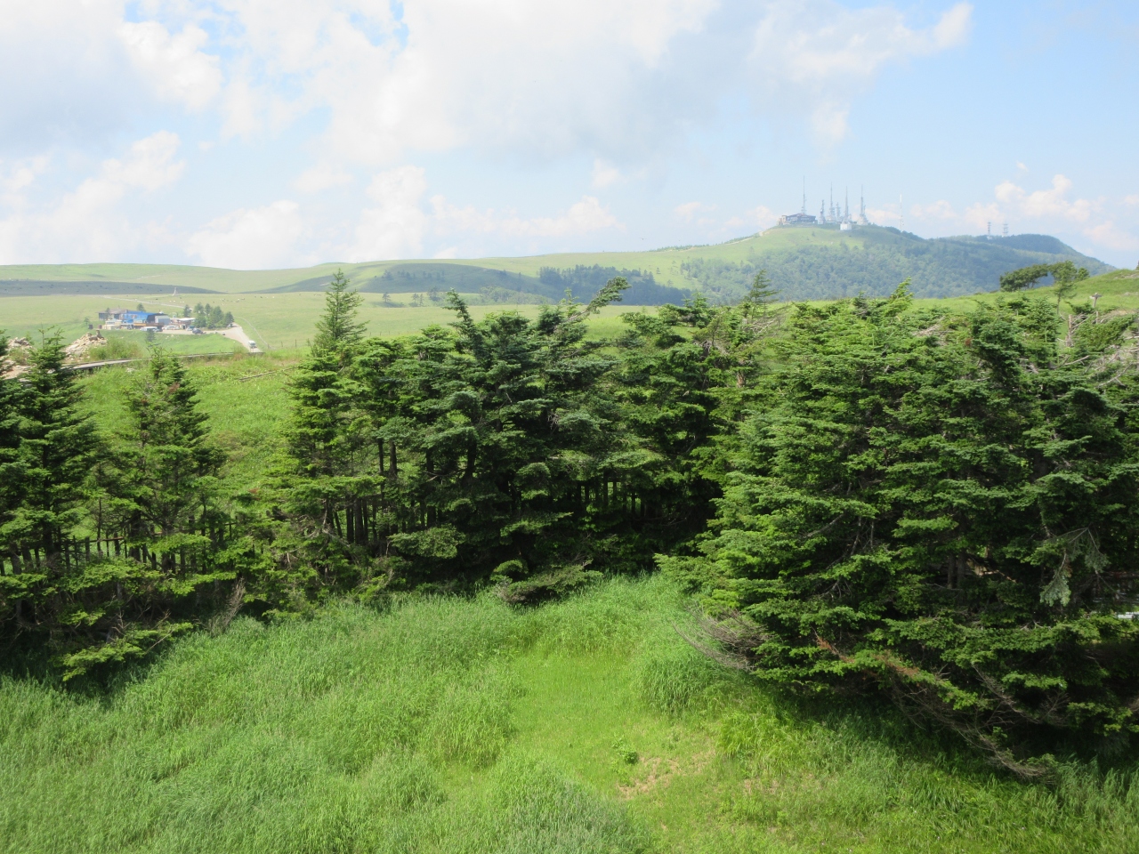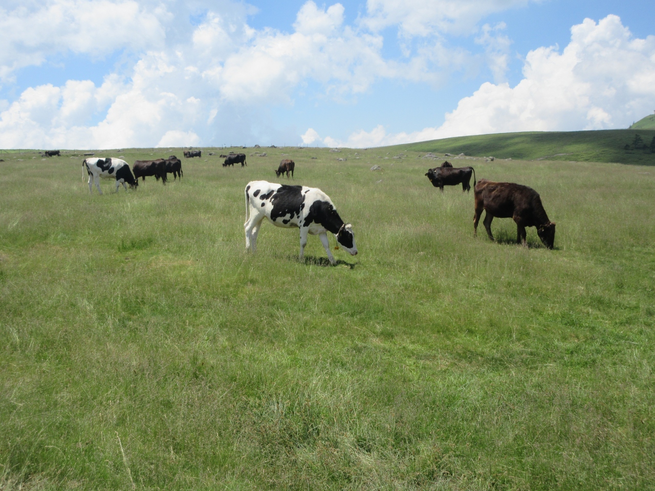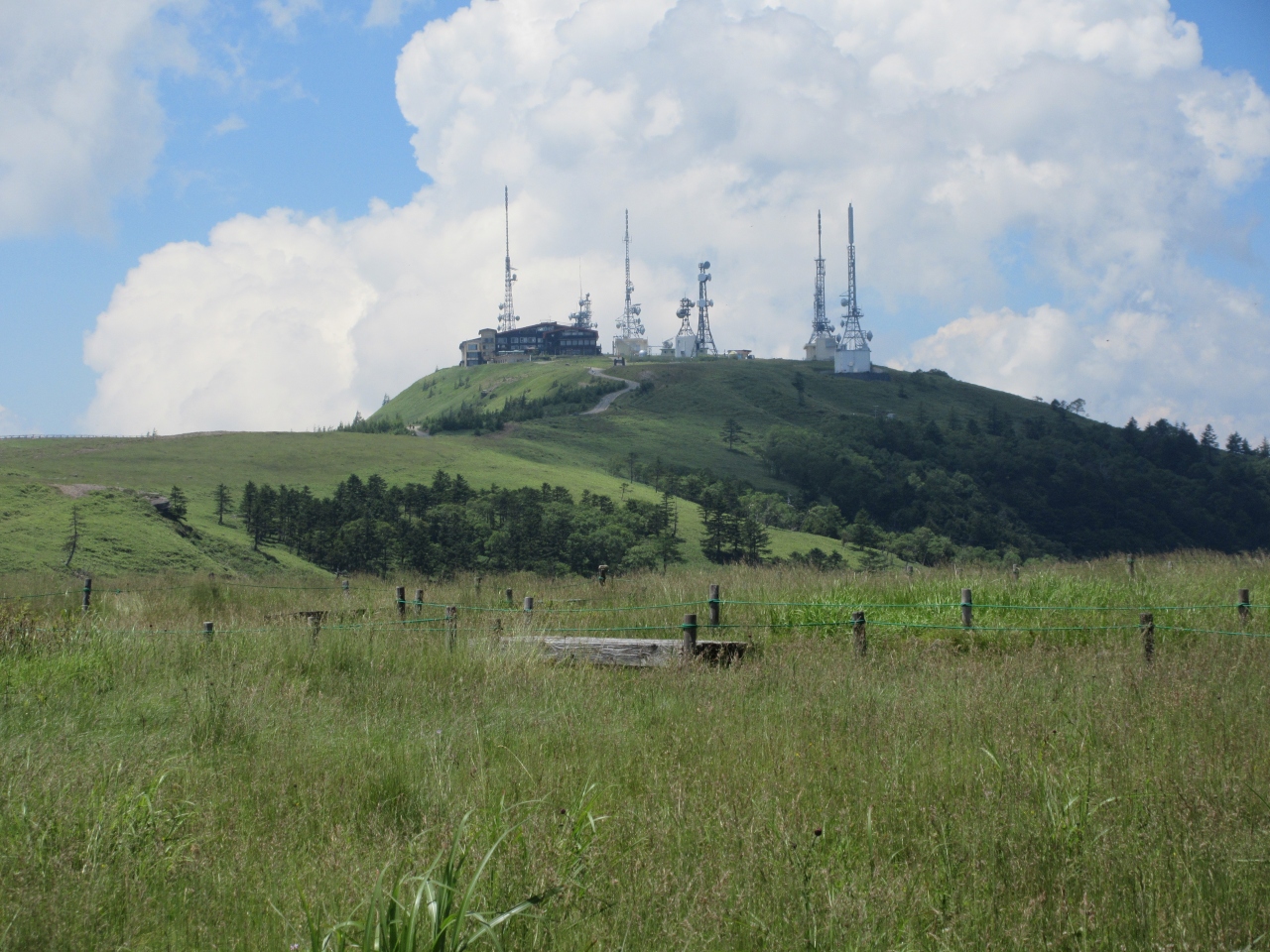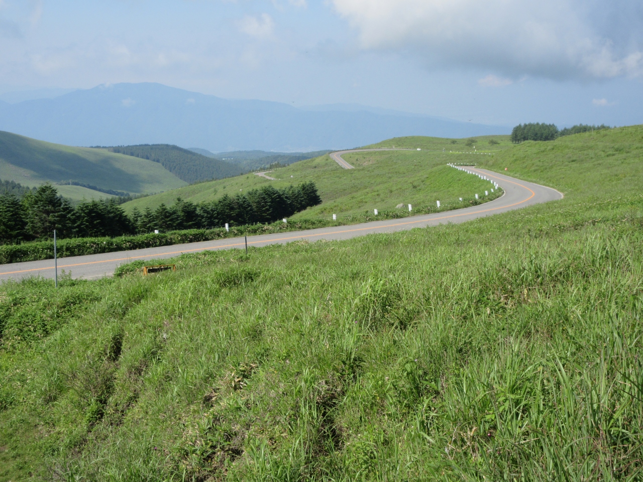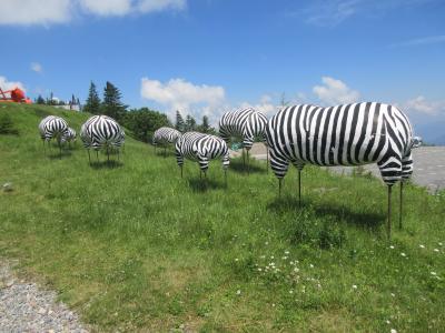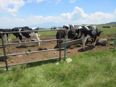 白樺湖からビーナスラインを通って美ヶ原高原へ行きました。まず美ヶ原高原美術館に行き、広い屋外展示場で作品を歩きながら見ました。次に山本小屋ふる里館の駐車場に車を置いて、美しの塔と塩くれ場まで歩きました。蓼科高原や白樺高原の牧場と比べて、乳牛の頭数が多く牧場らしいところでした。標高2000mの草原に立ち360度広がる空を見上げ、開放感を満喫しました。美ヶ原高原ホテル山本小屋に併設されている食事処で、きのこ汁と山本小屋名物ソフトクリームを食べて休憩しました。夏休み前の平日に訪れたので、中高年の観光客と遊歩道を歩く校外学習の小学生たちがいるくらいで静かな美ヶ原高原を楽しみました。