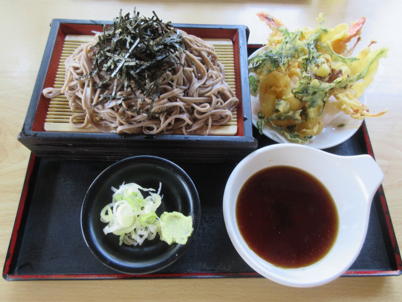 午前中美ヶ原高原に行き、遅めの昼食を和田宿ステーションの食堂でとるために寄りました。レジで支払すると出来上がり次第席まで運んでくれます。自分たち以外に二組が利用していました。店の雰囲気から期待しないでざるうどんと天ぷらざるそばを注文しました。つけ汁は普通でしたが、こしのあるうどんと手打ちそばは美味しかったです。第一印象をくつがえす麺類に満足しました。