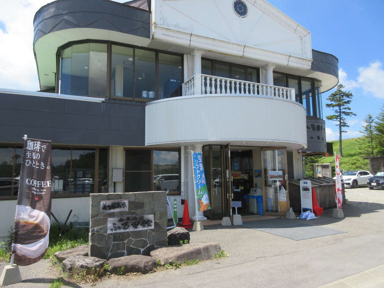 美ヶ原高原美術館を見学した後、車で山本小屋ふる里館へ行きました。名物ソフトクリームや各種お土産が売っています。高山植物をデザインした布製シールやアクセサリーなどもありました。冷凍の小さなチーズケーキとカマンベールクリームチーズを土産に買いました。小さな保冷剤を付けてくれましたが、家に帰るまで4時間かかったので、チーズケーキは丁度いい解凍状態になっていました。甘さ控えめのふわふわしたチーズケーキはもっと買えばよかったと思うくらい美味しかったです。クリームチーズをトーストに塗って食べました。パンの味を引き立てるクリームチーズでした。スタッフが教えてくれたジャムと混ぜてパンに塗ってみようと思います。チーズ好きの人たちへの土産に買い、正解だったです。