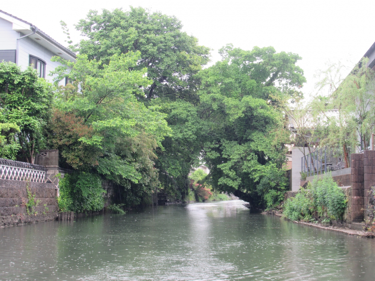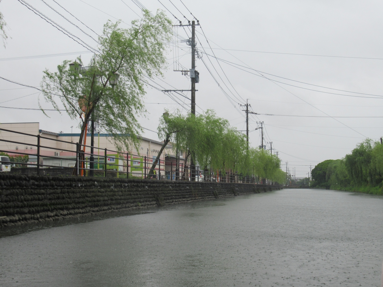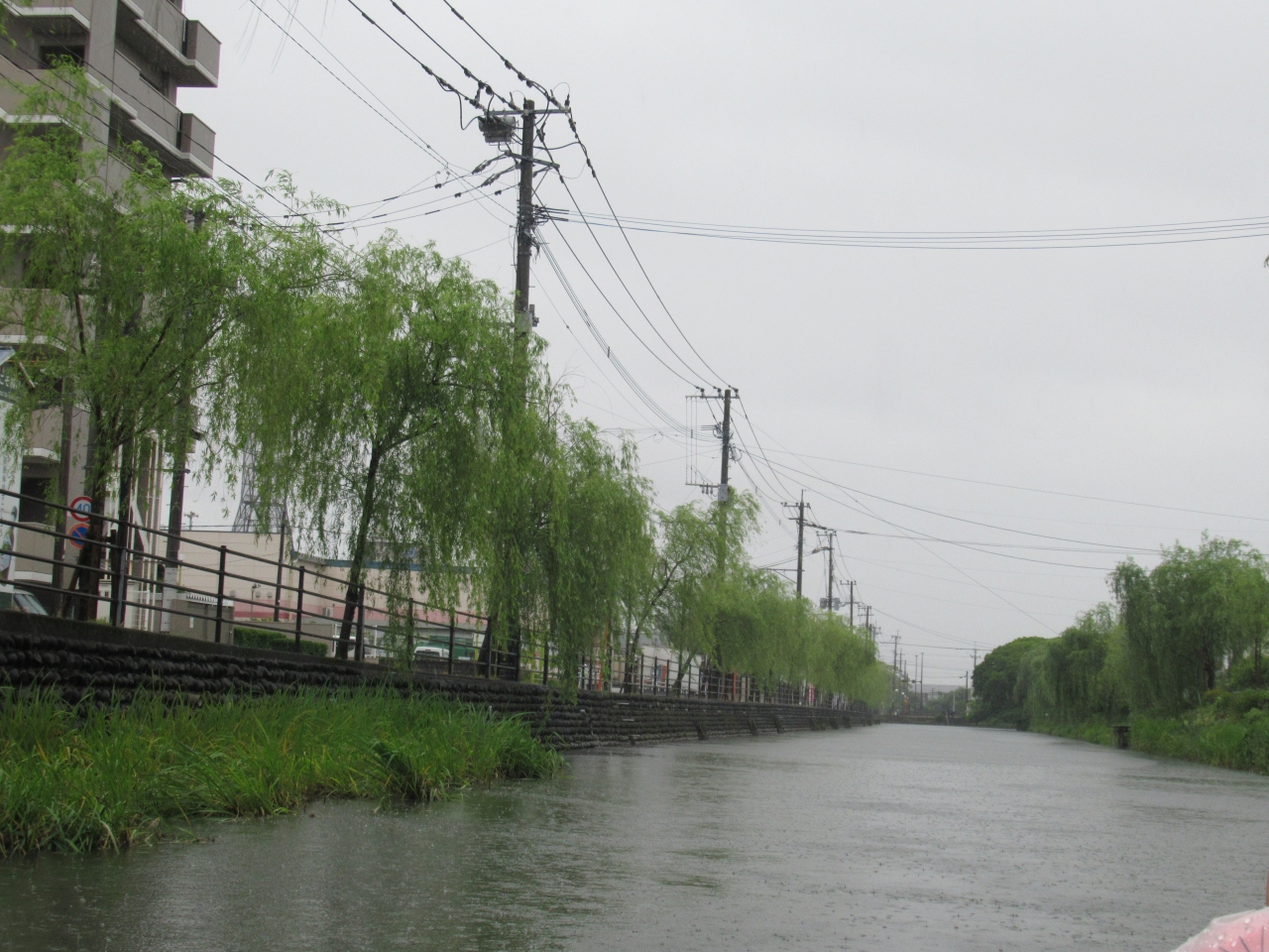 柳川の定番観光スポットです。どんこ舟と呼ばれる15人ほどが乗れる小舟で水路を巡ってくれます。途中、低い橋や狭い橋の下を頭を下げながらくぐったり、船頭さんの歌に耳を傾けたり、周囲の柳や菖蒲、紫陽花を眺めたりしながら1時間ほどの乗船を楽しみました。船頭さんの話では桜の季節はより美しいとのことでした。水路のところどころで、人慣れしたアオサギも乗船客を歓迎してくれました。運航している企業は数社あるようで、ホテルまでどんこ舟で乗客を迎えに来てくれるコースや、舟上で食事ができるコース、40分ほどの短いコースなどもあるようです。私が乗船したコースは1時間ほどでしたが、大雨だったこともあり乗船時間が少し長かったように感じました。最近は海外からの乗船客も多いようで、船頭さんの説明が日本語と英語で行われたのが面白かったです。