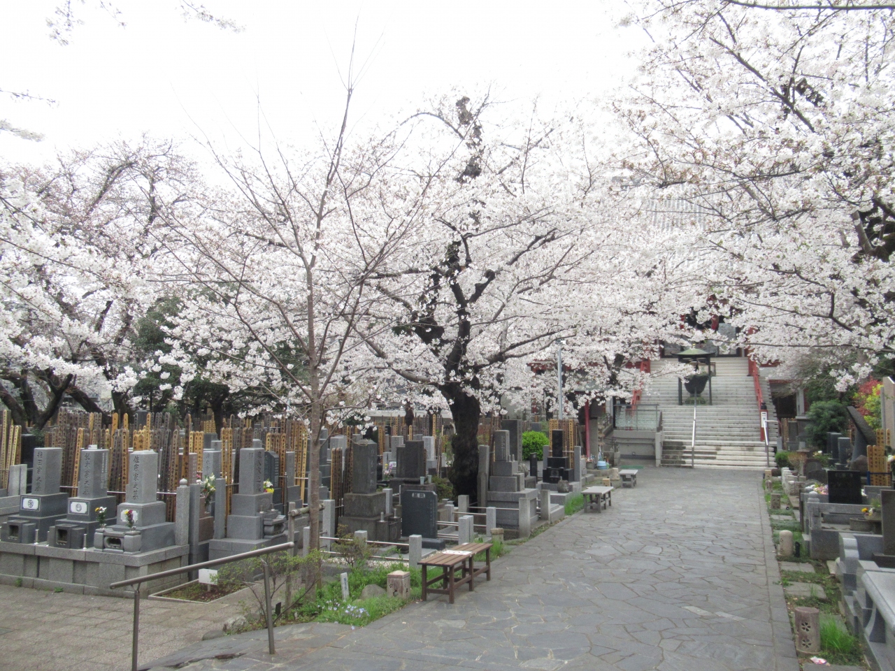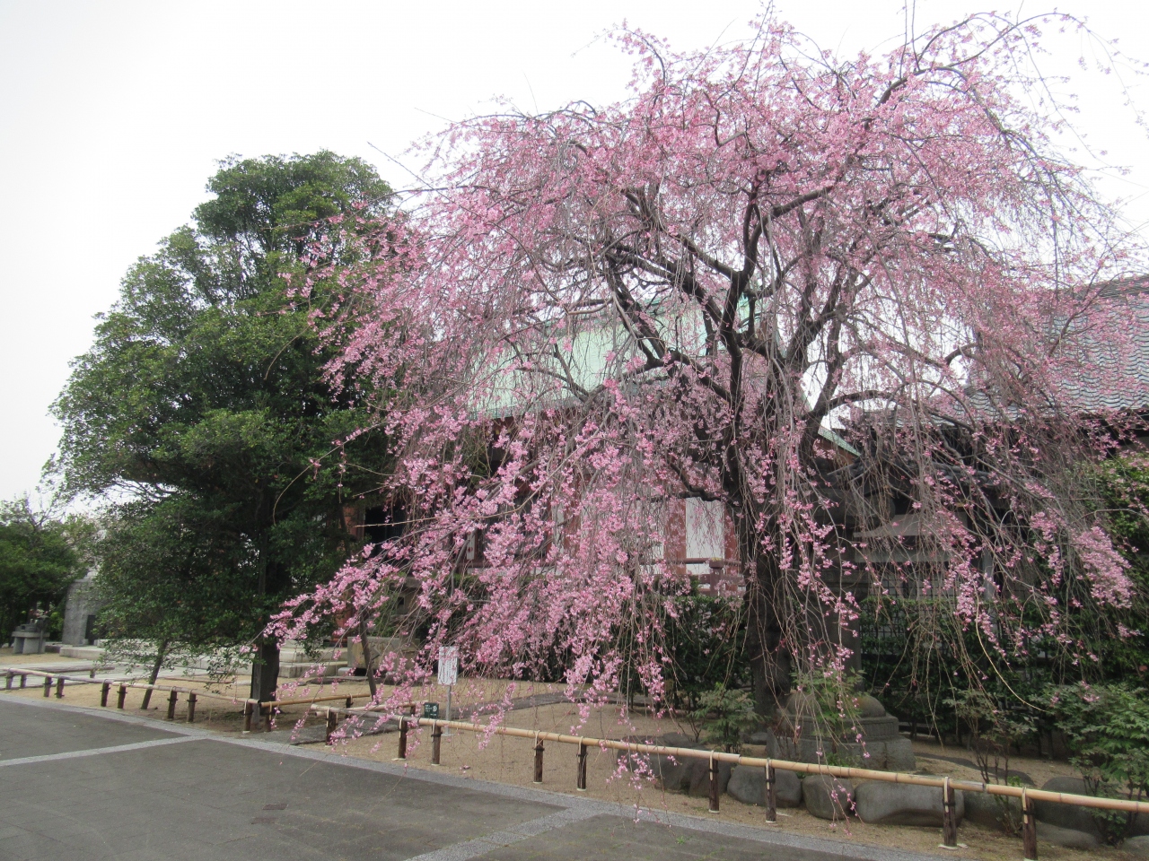 南北線本駒込駅出口2から6分ほど本郷通りに面しています。現在の水道橋にありましたが、1657年の明暦の大火後に現在地に移った。多くの学僧が学ぶ僧侶の養成機関がありました。戦火で建築物が焼失し、木造山門と経蔵が残りました。山門から本堂までの山道の両側にイチョウと桜の並木があります。参道の枝垂桜はまだ1分咲にもなっていませんでした。鐘楼横の枝垂れ桜と経蔵横の桜がきれいに咲いていました。広い墓地内にも白い葉桜が咲いていました。平日午前、桜を見に訪れる人がいました。