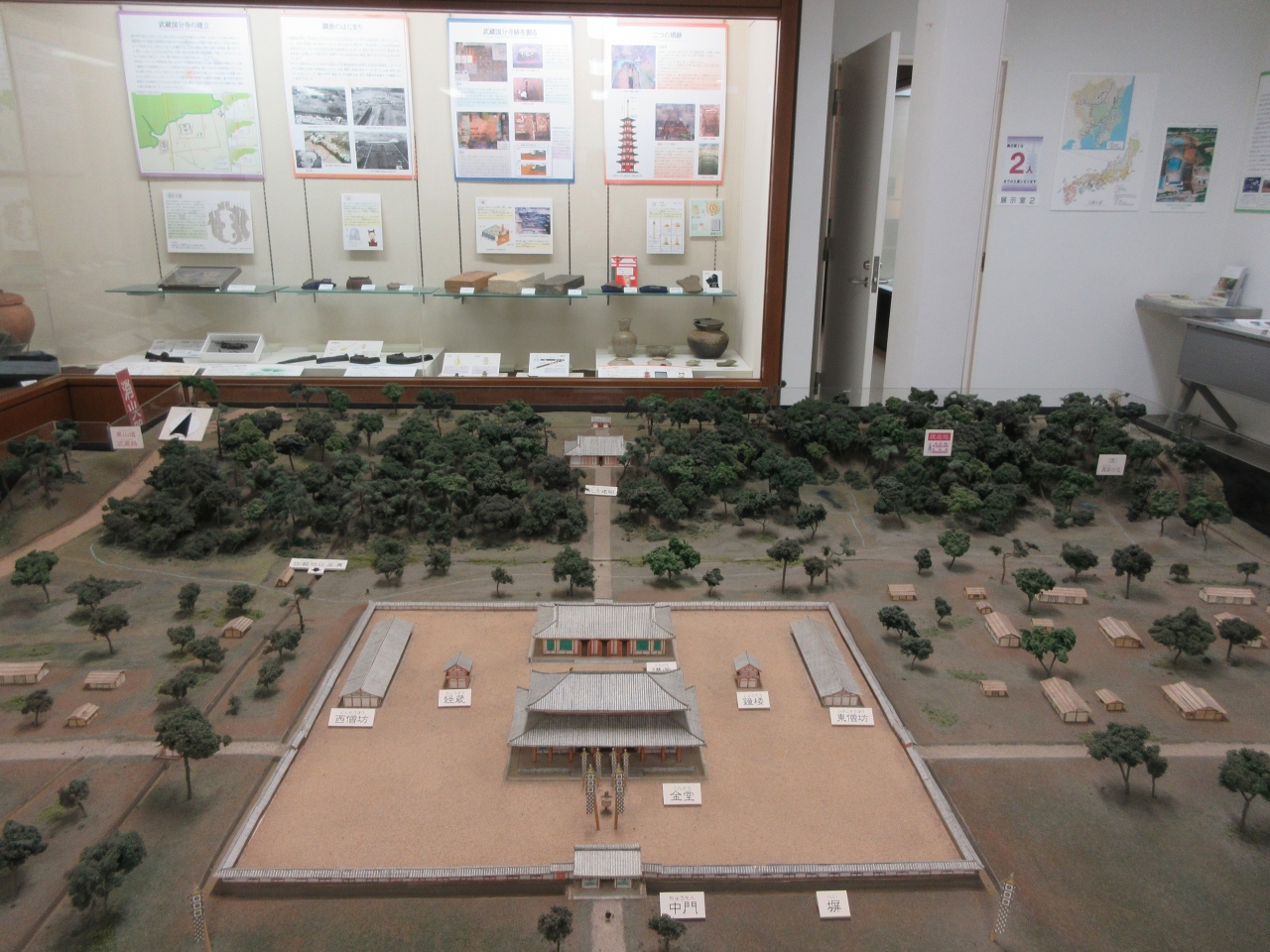 国分寺・薬師堂から80mほどのところに保存されています。奈良時代の中頃に起こった伝染病や地震、農作物の不作などを鎮静しようとして建てられた建物で、国分寺にあったものは東西1.5㎞、南北1㎞程の、全国で最も大きな境内だったとのことです。現在は広い公園のような草地に、金堂や講堂、経蔵、中門、七重塔などがあった場所がわかるように整地されています。広大な敷地に立ち奈良時代の生活の場にいることに感動しましたが、建物らしきものが全くなく残念に感じました。一つでも復元されるとさらに跡地をより身近に感じることができるのではと思ってしまいました。