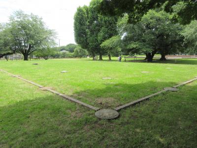 国分寺跡から450mほど、府中街道から100mほど入ったところに、整地された尼寺跡が保存されています。敷地内には金堂や尼坊、講堂、中門跡などがわかるように整地され、歴史公園としてだれでも利用できるようになっています。説明板はあるものの、国分寺跡同様、建物が一切ないのが残念に思いました。子どもたちが自由に走り回れるのは素晴らしいですが、建物が一つでもあると寺跡をより身近に感じることができるのではと感じてしまいました。