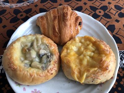 新大塚駅そばの大塚5丁目交差点近くにあるパンとケーキの店です。以前から気になっていたので今回、パンとケーキを買いました。本日のパン(キノコソース)、コーンマヨ、チョコクロワッサン、クロワッサン、ロールケーキ、ブルーベリーとレアチーズのアルモニーを購入しました。エリンギやシメジなどのキノコがたっぷり入ったソースをパン生地が支えているような本日のパンは、キノコシチューにパンをひたして食べているようでした。コーンがたくさん入っているコーンマヨもボリュウームありました。クロワッサンも美味しくて他のパンも食べたくなりました。しっとりもっちりしたスポンジがカットフルーツのちりばめられているクリームを包んでいるロールケーキは見た目よりも食べ応えありました。甘酸っぱいブルーベリーとレアチーズが組み合わさったアルモニーも美味しかったです。次回はかわいらしく懐かしい形のシュークリームを食べたいです。