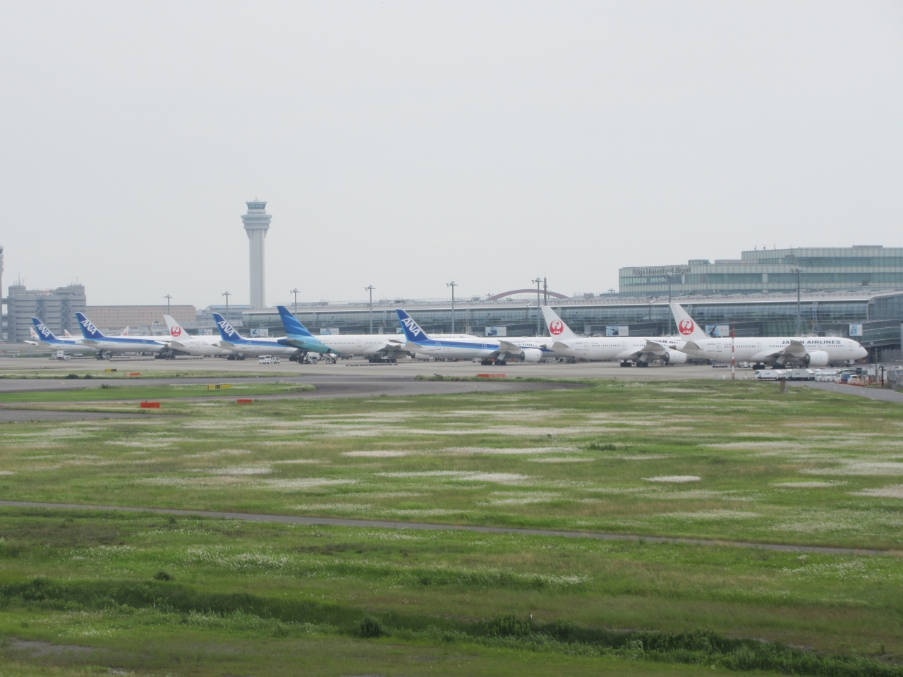 日本の空の玄関口・羽田空港で飛行機の離発着を見学する時は、これまで各ターミナルにある展望デッキを利用していましたが、今回初めてHaneda innovation cityの足湯デッキから見学しました。展望デッキからほど近くから見学することはできませんが、足湯に浸かりながら座ってのんびり離発着する飛行機や待機中の飛行機を眺めることができました。コロナの影響で離発着する飛行機は少なかったですが、ゲートに整然と並ぶ多くの飛行機を見ることができました。Innovation cityがまだ建設途中ということもあり、足湯は空いていました。羽田空港を眺める隠れたスポットと言えます。