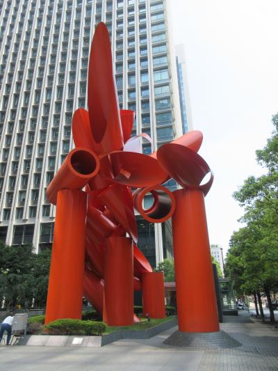 東京メトロ大手町駅A4出口に建つ東京サンケイビルの敷地内に造られた、オレンジ色の大きなオブジェです。鉄の筒を組み合わせて造られた高さ14mほどのオブジェで、組み合わされた筒が空に向かって伸びています。文明の創造と再生を表現しているとのことです。表現している内容は難しくよくわかりませんでしたが、都心に現れた巨大なオブジェは、近くを通る人々の目を引き付けています。
