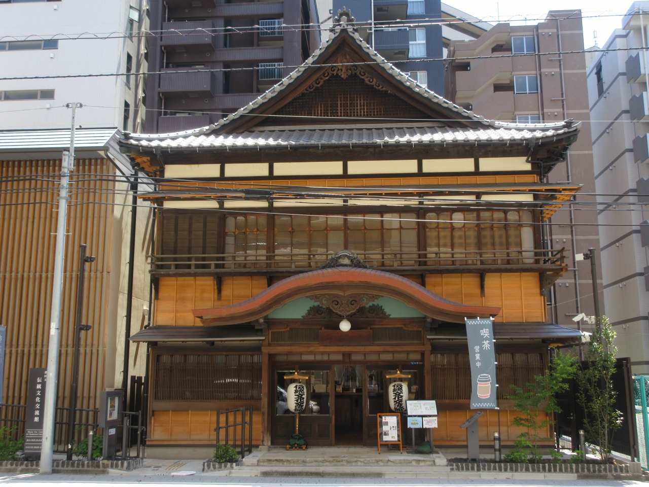 JR田町駅東口から線路沿いを浜松町駅方向に10分ほど行ったところに建つ、正面玄関に唐破風を持つ木造2階建ての伝統文化交流館です。昭和11年に建てられた建物で、芸者さんの取次ぎや費用の清算、芸者さんの稽古場として使われた花柳界の見番として使用され、戦後は港湾労働者の宿泊所・協働会館として使われた歴史があります。現在は江戸時代から現代にかけての芝浦の移り変わりを、写真や映像、パネル、雑誌記事などで紹介しています。海岸リゾートとしてにぎわった様子や、見番時代の様子がわかる無料の資料館です。2階には70畳ほどの畳が広がる広間や30畳ほどの舞台、磨りガラスの窓、格子天井などが復元されていて見学することができます。