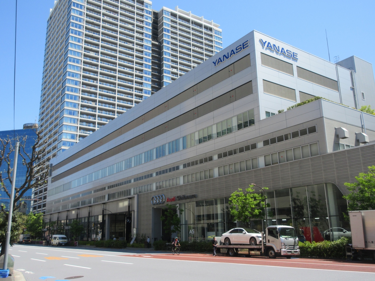 JR田町駅から10分ほどのところに建つヤナセ本社ビルで、1階がベンツやアウディのショールームになっていて、10台以上の新車が展示されています。本社ビルから100mほど離れたところにはキャデラックやシボレーのショールームもあります。本社ビルと田町駅の間に建つ田町ステーションタワーN棟には、三菱自動車のショールームもあります。車に興味がある方には、ショールームのはしごができるエリアです。