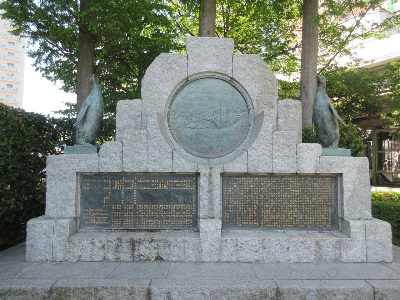 日本最初の南極探検隊が出発したことを記念した碑が建っています