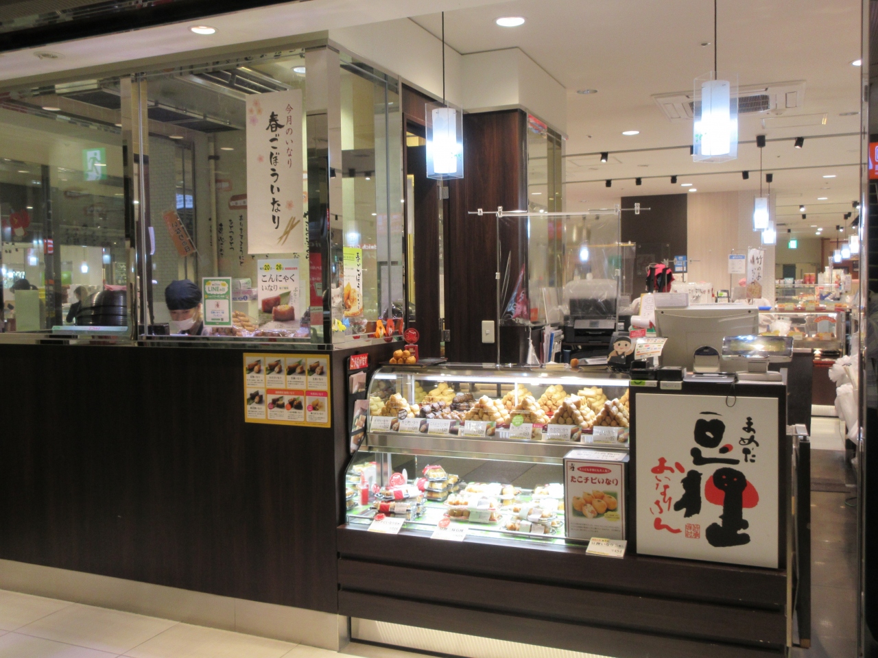 JR赤羽駅構内にある商業施設・エキュート赤羽内に出店している、いなり寿司の店です。いろいろな場所にあるためしばしば利用しています。今回は、わさびいなりや具だくさんの五目いなりなどの定番メニューの他、ゆず風味が効いた酢飯を甘辛いこんにゃくで包んだ、低カロリーのこんにゃくいなりと、季節限定の春ごぼういなりを購入しました。どれも二口ほどで食べられる小さめのいなりですが、上品でしっかり煮込んだお揚げで包んだいなりはいくつでも食べられる美味しさで、これからも利用しようと思っています。