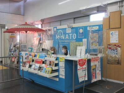 JR浜松町駅構内からモノレールに乗り換える3階中央改札の手前、JR構内側にあります。目立たないところですが、訪れた平日午前はスタッフが二人いました。港区観光案内のパンフレットをいくつかもらった際、個別包装されたマスクをいただきました。包装にMINATO CITYのシールが貼ってありました。コロナ禍で海外からの観光客の利用がない状態のようです。散策の際に寄って、歩く予定の地域の情報を教えてもらってはいかがでしょうか。