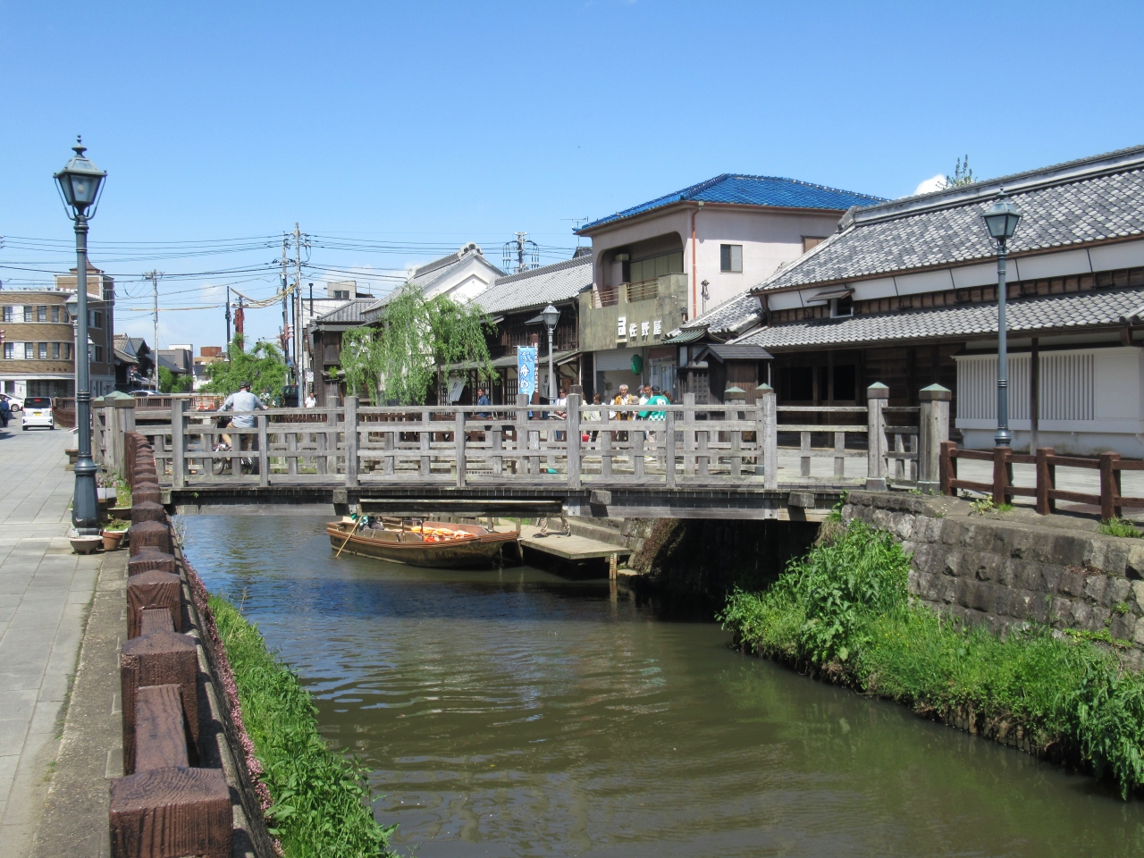 佐原は江戸時代、東北からの米や雑穀の中継地として、また舟による江戸への味噌や醤油の運送地として繁栄した街です。現在、町の中心を流れる小野川沿いには当時の町家や商家が数多く残り、趣ある町並みを形成しています。川沿いには柳が植えられ、格子窓や土蔵がある家々が建ち並んでいます。小野川に架かる樋橋付近には、日本で初めて実測日本地図を作った伊能忠敬の旧宅も保存されています。江戸時代の町並みと川沿いに植えられた柳を眺めながら、江戸時代に思いを馳せ、時間に追われずのんびり散策が楽しめます。