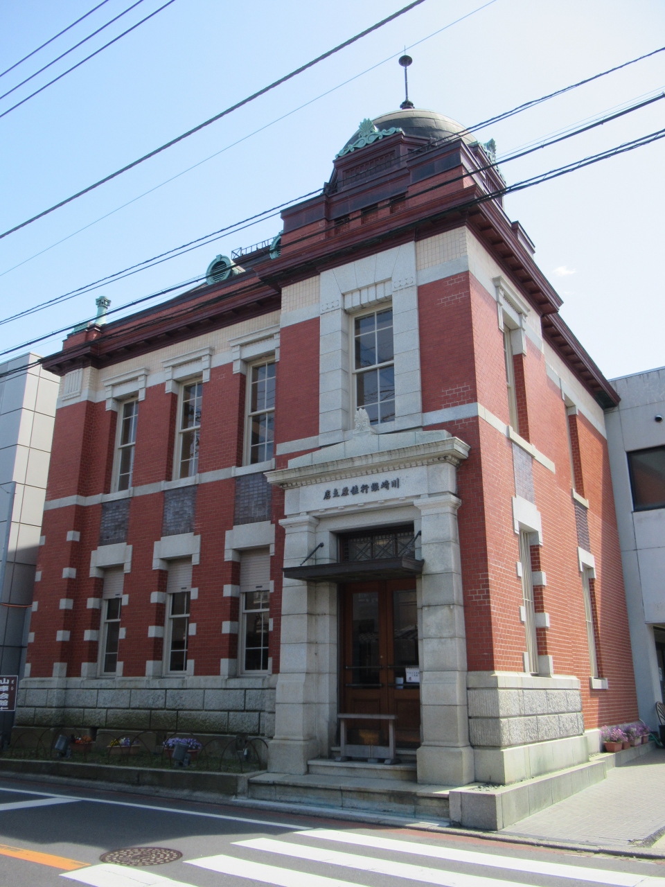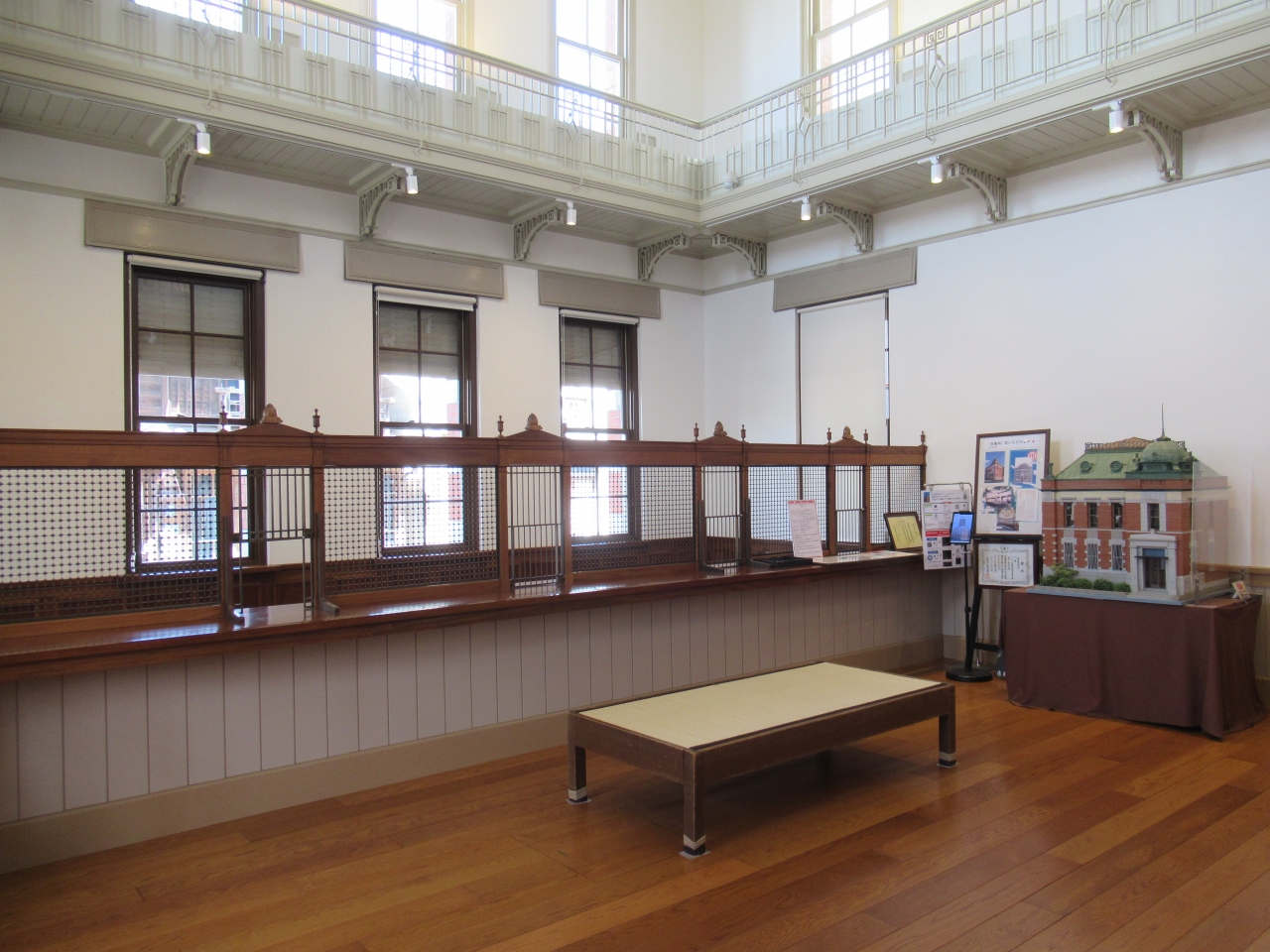 小野川に架かる忠敬橋から100mほどのところに建つ洋風建物です。1914年に建造されたレンガ造りの建物で、上部にはタイルと花崗岩を使用したドームが設置されています。昭和の終わりまで銀行として使用されていましたが、現在は銀行業務を扱っていた窓口が復原され、小野川沿いに建つ町家や商家の精巧な模型の展示や、佐原祭りを紹介する施設として利用されています。建設当時、古い街並みの中に現れた洋風建築に町の人は驚いたに違いありません。