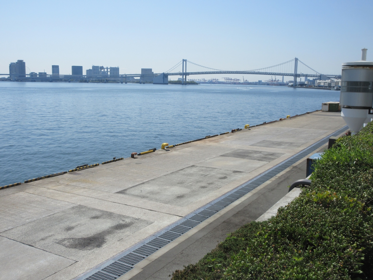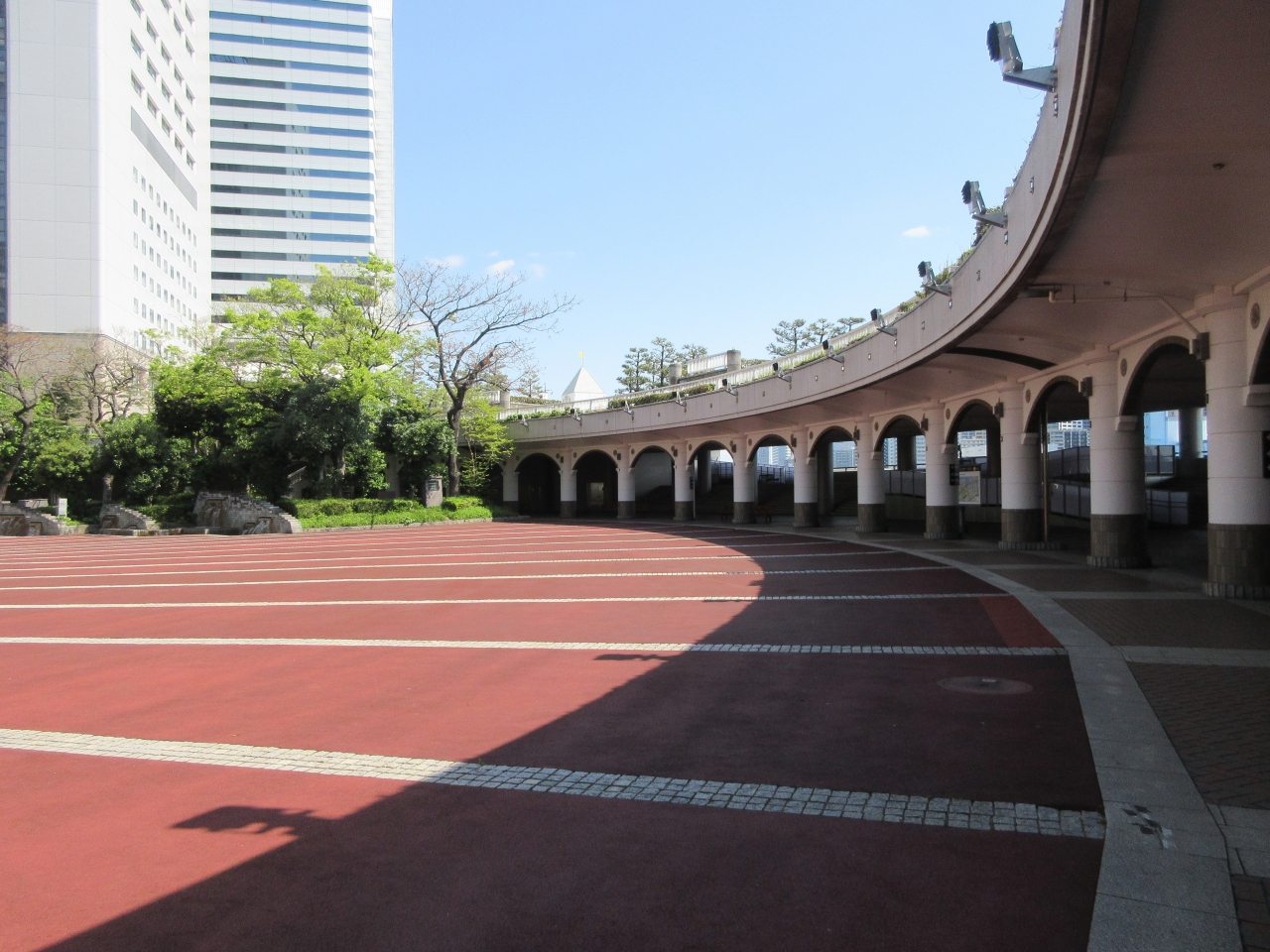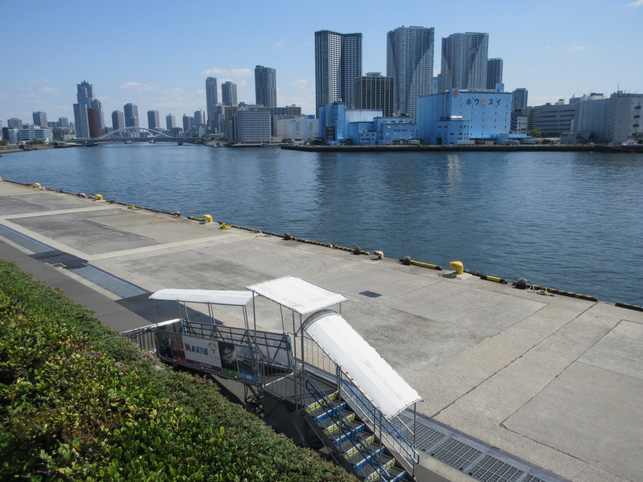 ゆりかもめ・竹芝駅から直結している、伊豆諸島に向かう高速ジェット船や大型客船の乗船券売り場や待合室などがある建物です。コロナの影響で利用者はほとんど見られませんでしたが、広々としていて開放的な雰囲気が感じられました。ターミナルの一角には伊豆諸島で作られている焼酎やあしたば製品、くさや、島海苔などを売っているアンテナショップや、各島を写真で紹介した休憩室もあります。建物を出た中央広場には船のマストをイメージした建造物も建ち、ターミナルらしさが感じられました。ターミナル2階には船が発着する桟橋や、東京湾や隅田川、レインボーブリッジ、お台場、スカイツリー、高層ビルなどが見渡せる緑豊かな広々としたエリアもあり、ベンチに座りながらのんびり過ごすこともできます。