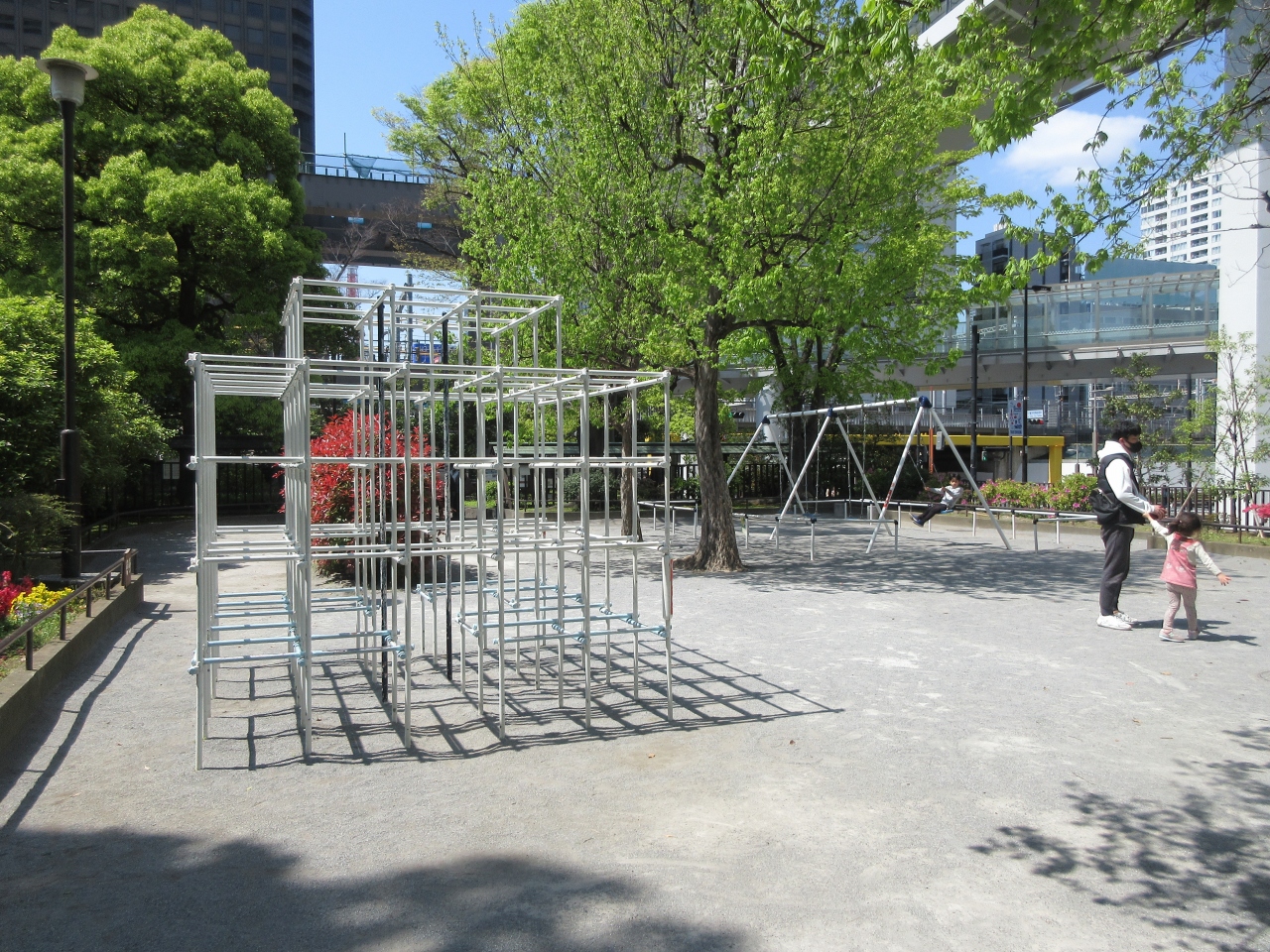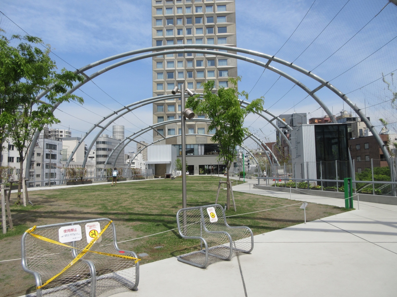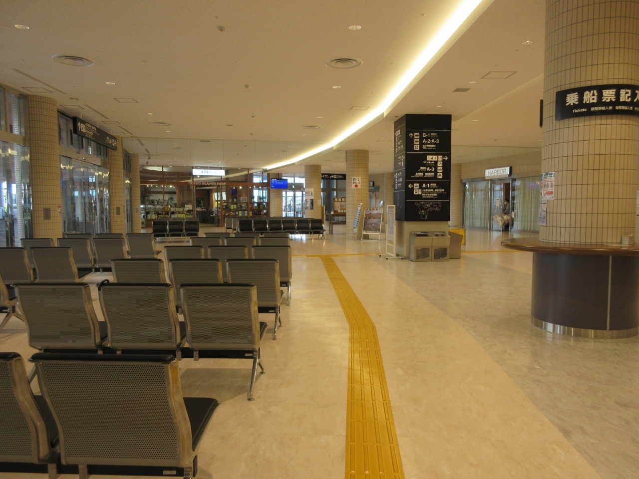 ゆりかもめ・竹芝駅から直結している、伊豆諸島に向かう高速ジェット船や大型客船の乗船券売り場や待合室などがある建物です。コロナの影響で利用者はほとんど見られませんでしたが、広々としていて開放的な雰囲気が感じられました。ターミナルの一角には伊豆諸島で作られている焼酎やあしたば製品、くさや、島海苔などを売っているアンテナショップや、各島を写真で紹介した休憩室もあります。建物を出た中央広場には船のマストをイメージした建造物も建ち、ターミナルらしさが感じられました。ターミナル2階には船が発着する桟橋や、東京湾や隅田川、レインボーブリッジ、お台場、スカイツリー、高層ビルなどが見渡せる緑豊かな広々としたエリアもあり、ベンチに座りながらのんびり過ごすこともできます。