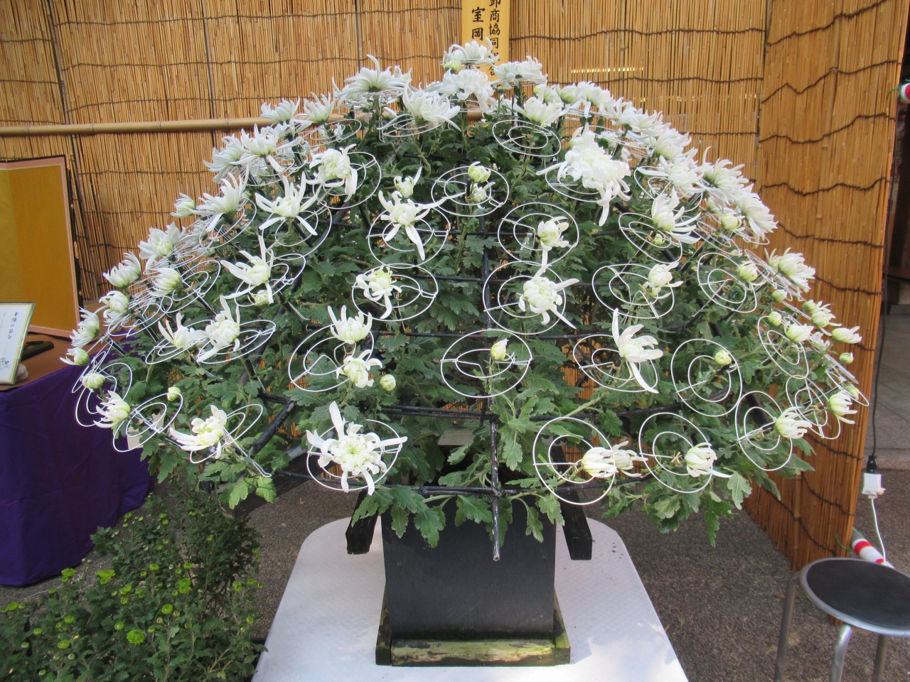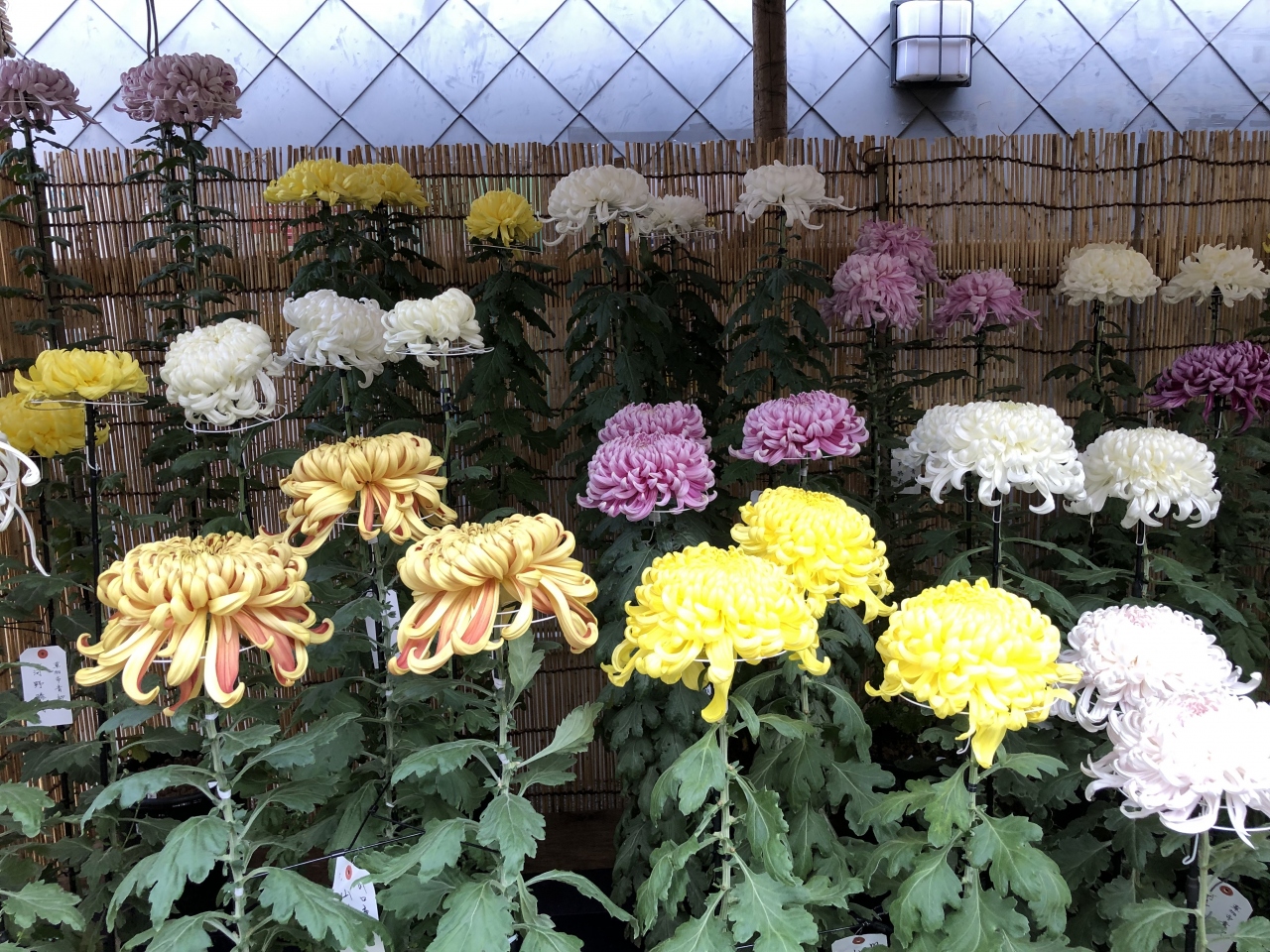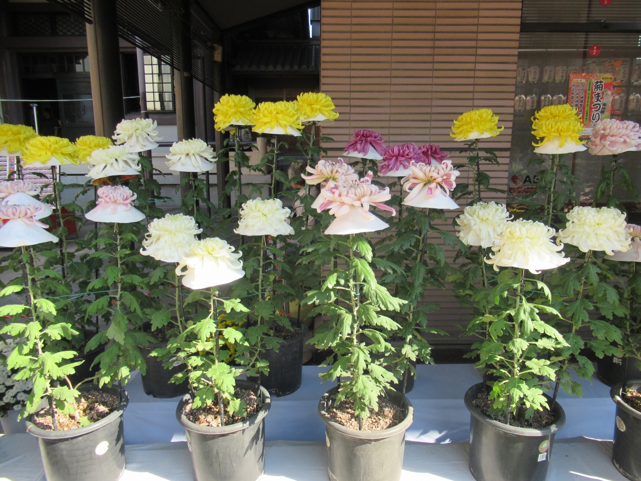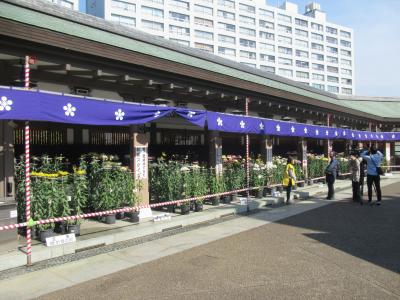 11月初旬、巣鴨地蔵通り商店街の入口に建つ江戸六地蔵尊の一つとして真性寺と、とげぬき地蔵で知られる高岩寺、大正大学がコラボして、三カ所に分かれて菊まつりが開かれます。高岩寺の境内には数は多くありませんが、幹が長い懸崖作りの菊が並び、縁日に商店街を訪れる人たちを楽しませてくれます。多くの露店が店を出す縁日に合わせ、菊まつりを楽しむのも面白いと思います。