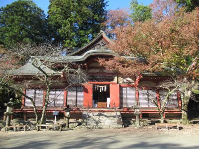 桜井駅からバスで25分ほど、中大兄皇子と藤原鎌足が蘇我氏討伐について話し合ったことから名が付いた神社です。江戸時代までは多武峯妙楽寺という名の寺でしたが、明治時代の神仏分離によって神社になったという歴史があります。境内には世界唯一の木造十三重塔や唐破風を持つ拝殿、藤原鎌足像が安置された旧講堂、吊灯籠が並ぶ1520年に再建された舞台造りの拝殿や、極彩色の模様と彫刻が素晴らしい華やかな本殿、350年以上前に再建された神廟拝所など、数多くの重要文化財を見学することができます。現在は神社になっていますが、かつては寺だったことから、境内全体、寺らしさが感じられました。境内から山道を290mほど上がったところには、藤原鎌足と中大兄皇子が秘策を練ったとされる場所があり、御相談所と刻まれた石碑と祠が建っています。